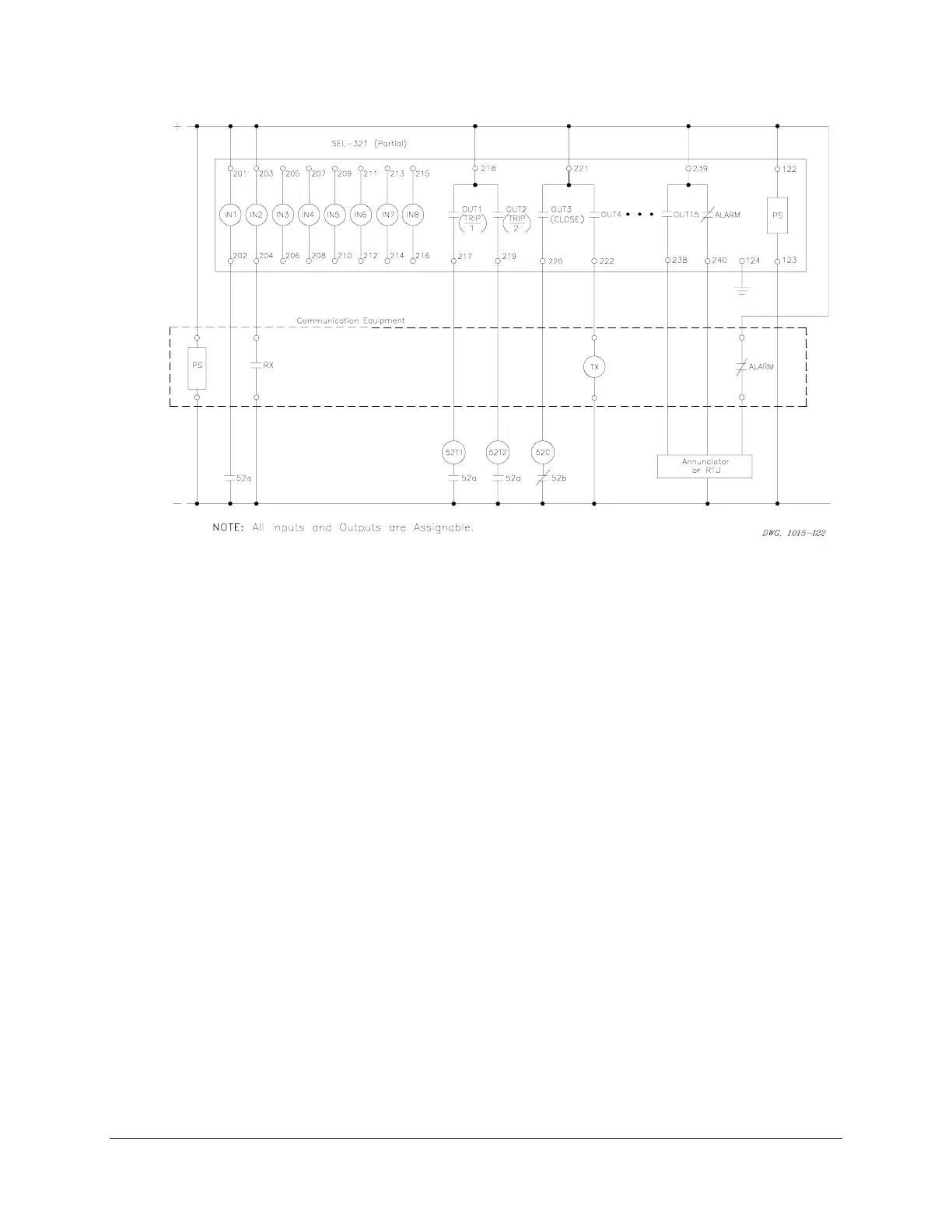 Figure 6.19: SEL-321 Relay External DC Connections to Communications Equipment