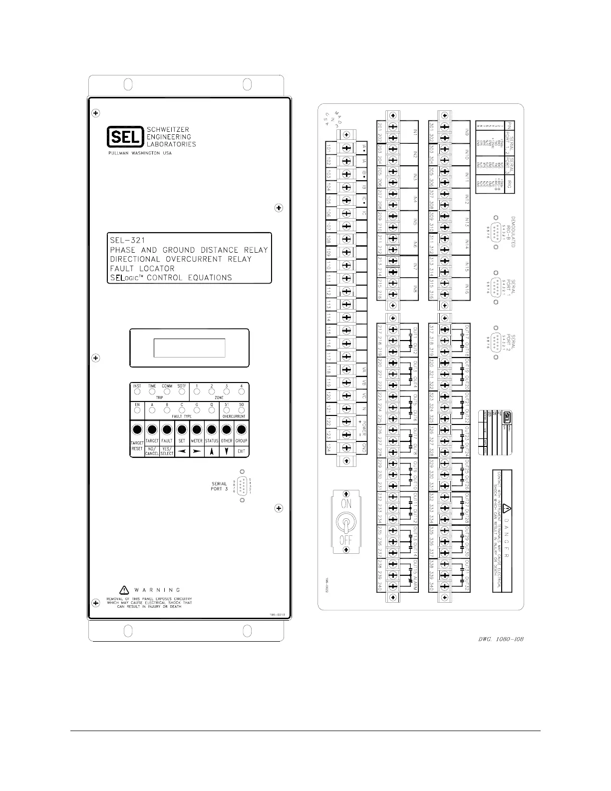 Figure 6.9: SEL-321 Relay Vertical Front and Rear Panel Drawings