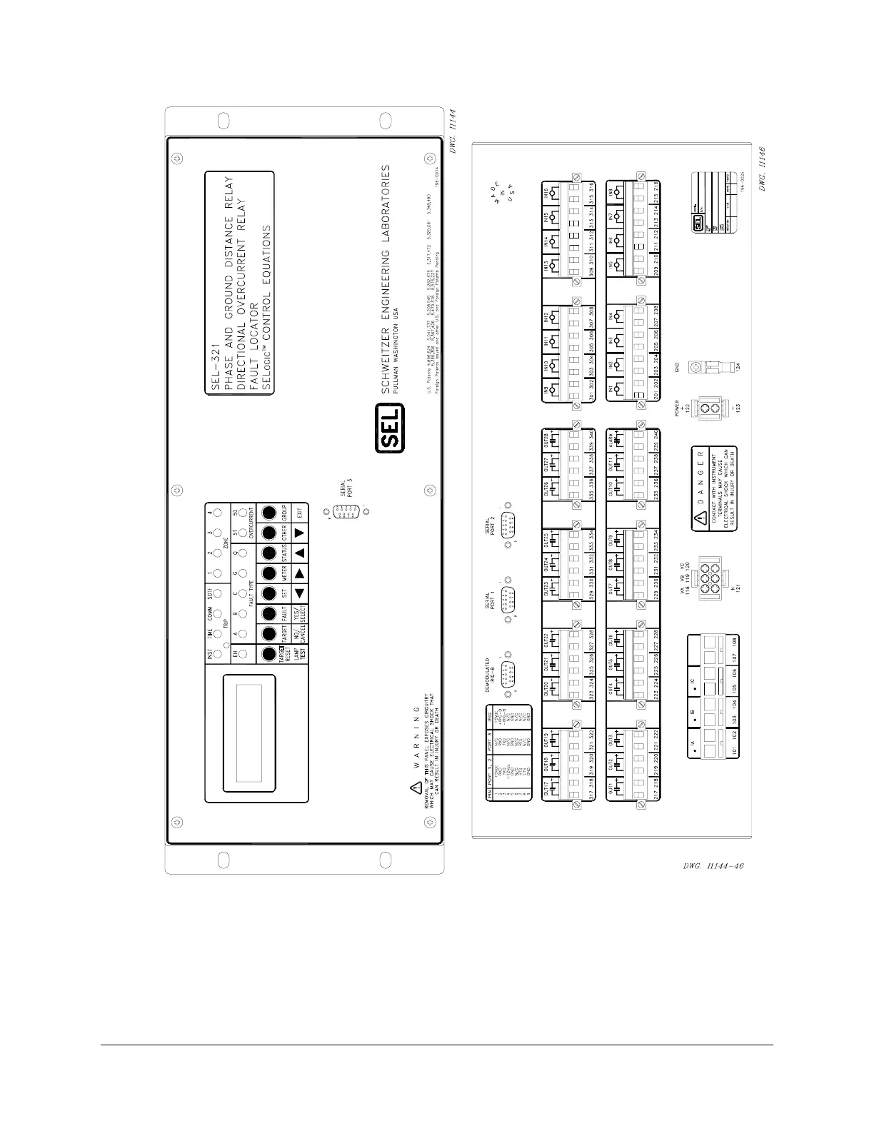 Figure 6.12: SEL-321 Relay Horizontal Front and Rear Panel Drawings