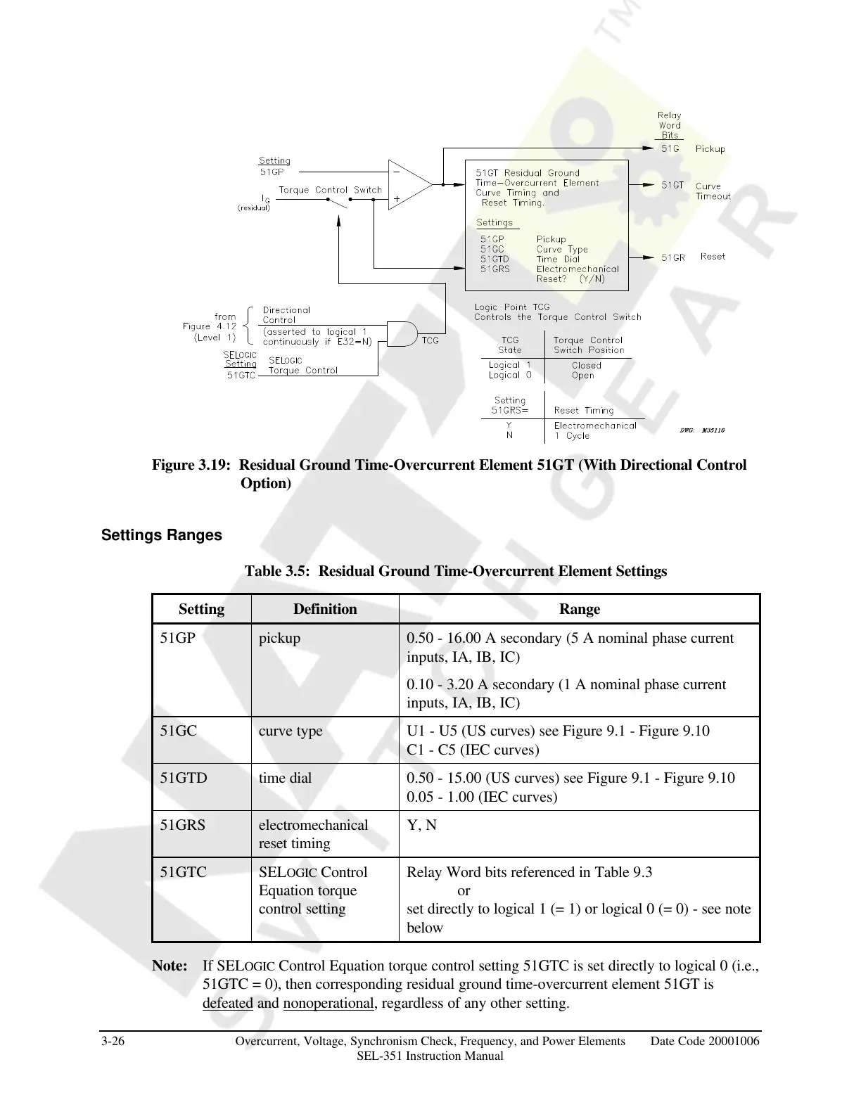 Note: If SELOGIC Control Equation torque control setting 51GTC is set directly to logical 0 (i.e.,