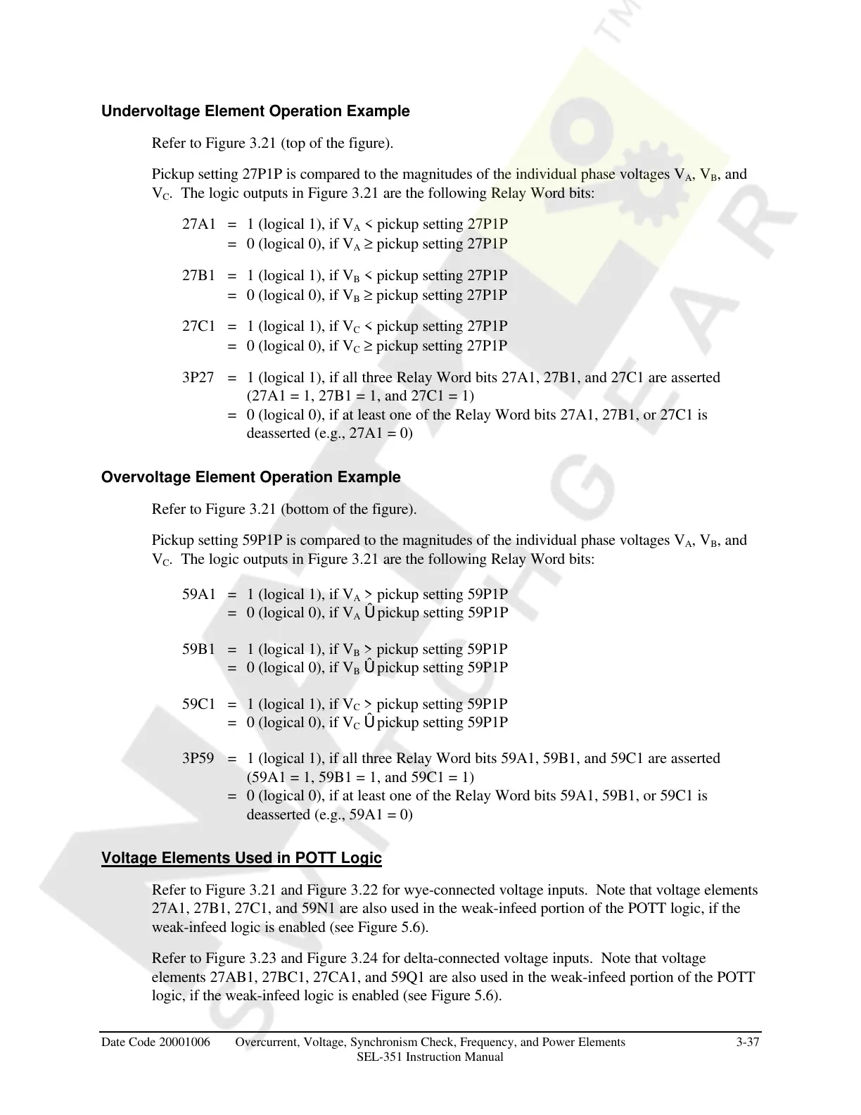 Date Code 20001006 Overcurrent, Voltage, Synchronism Check, Frequency, and Power Elements 3-37