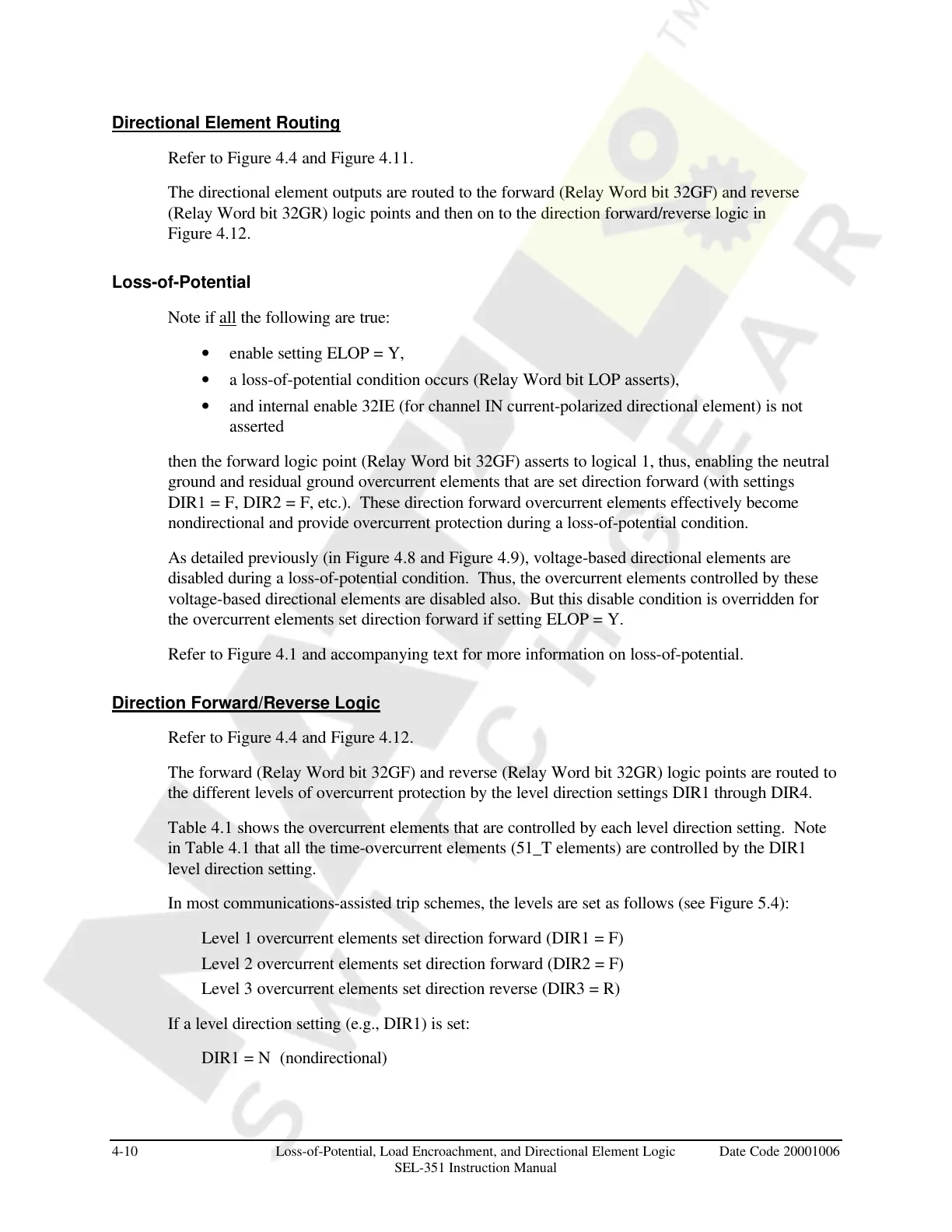 4-10 Loss-of-Potential, Load Encroachment, and Directional Element Logic Date Code 20001006