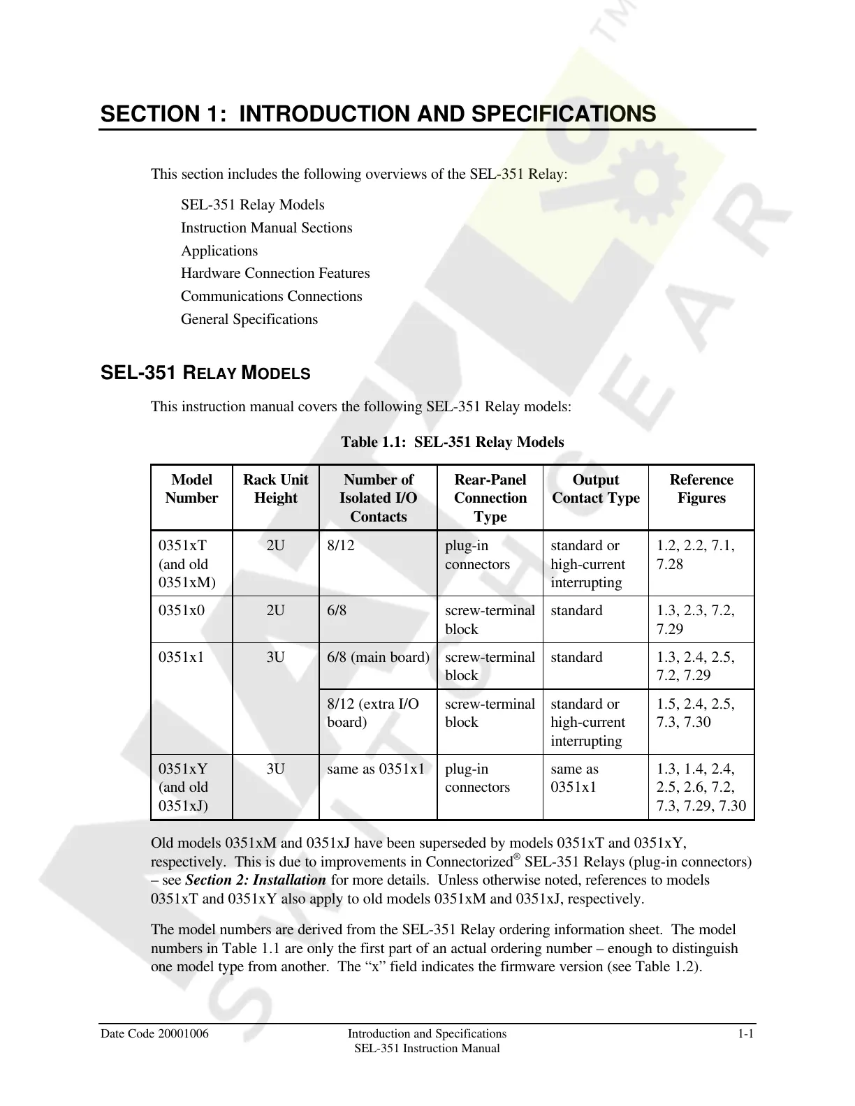 This instruction manual covers the following SEL-351 Relay models: