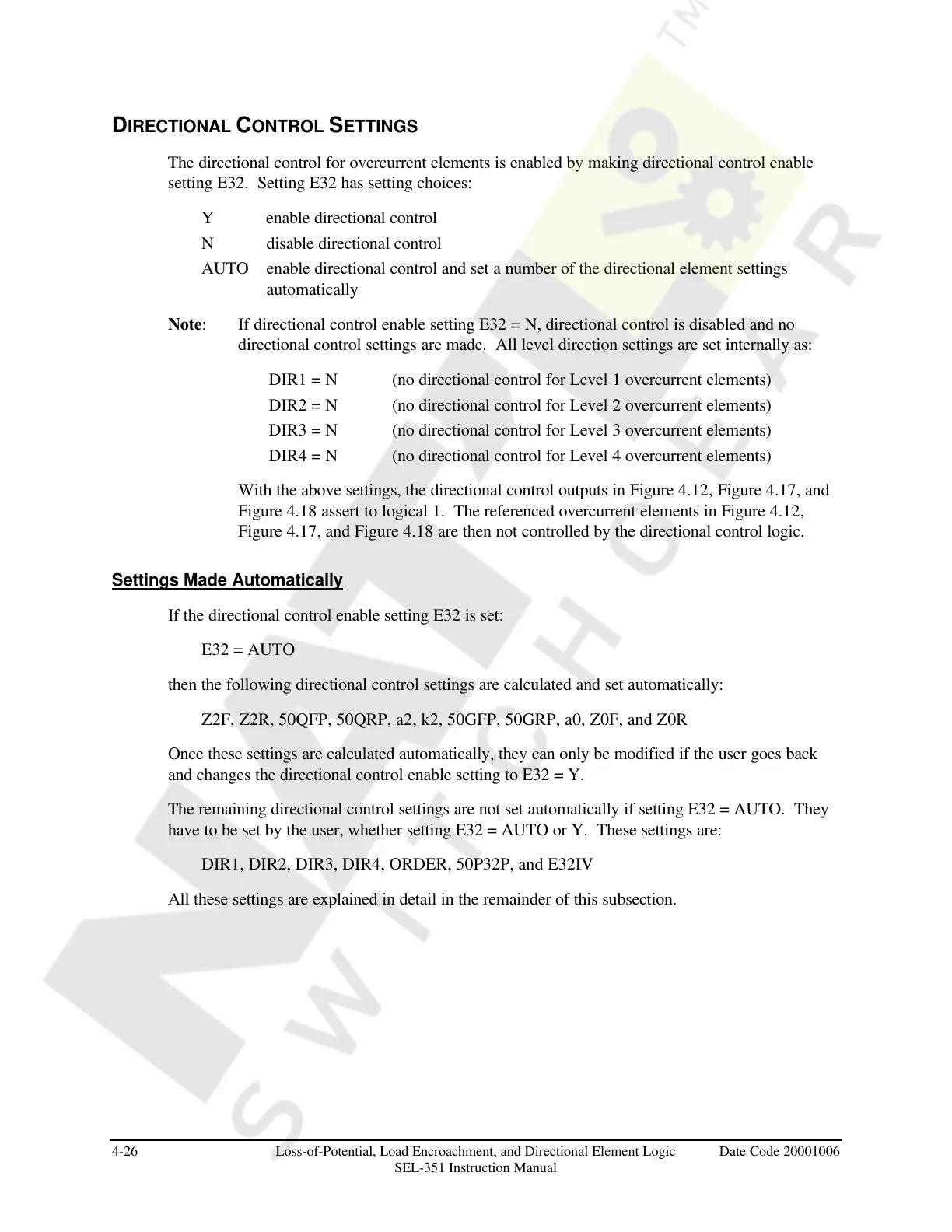 DIR4 = N (no directional control for Level 4 overcurrent elements)