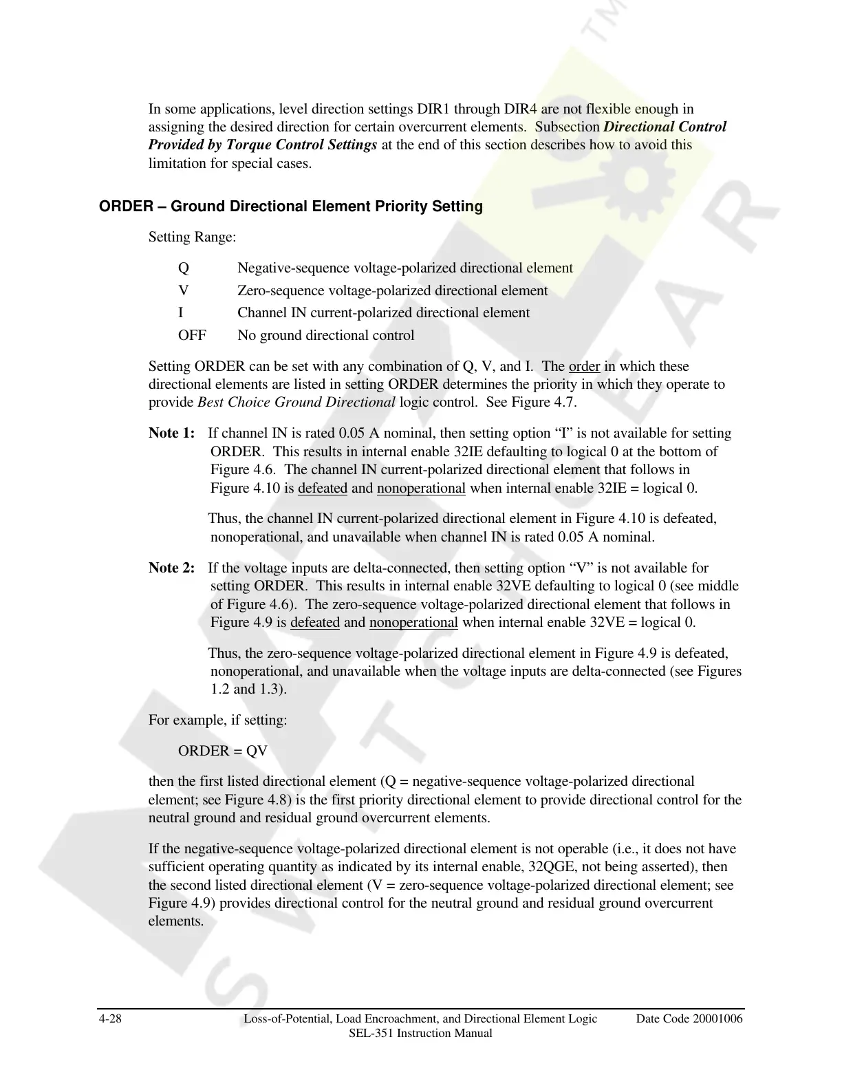 ORDER – Ground Directional Element Priority Setting