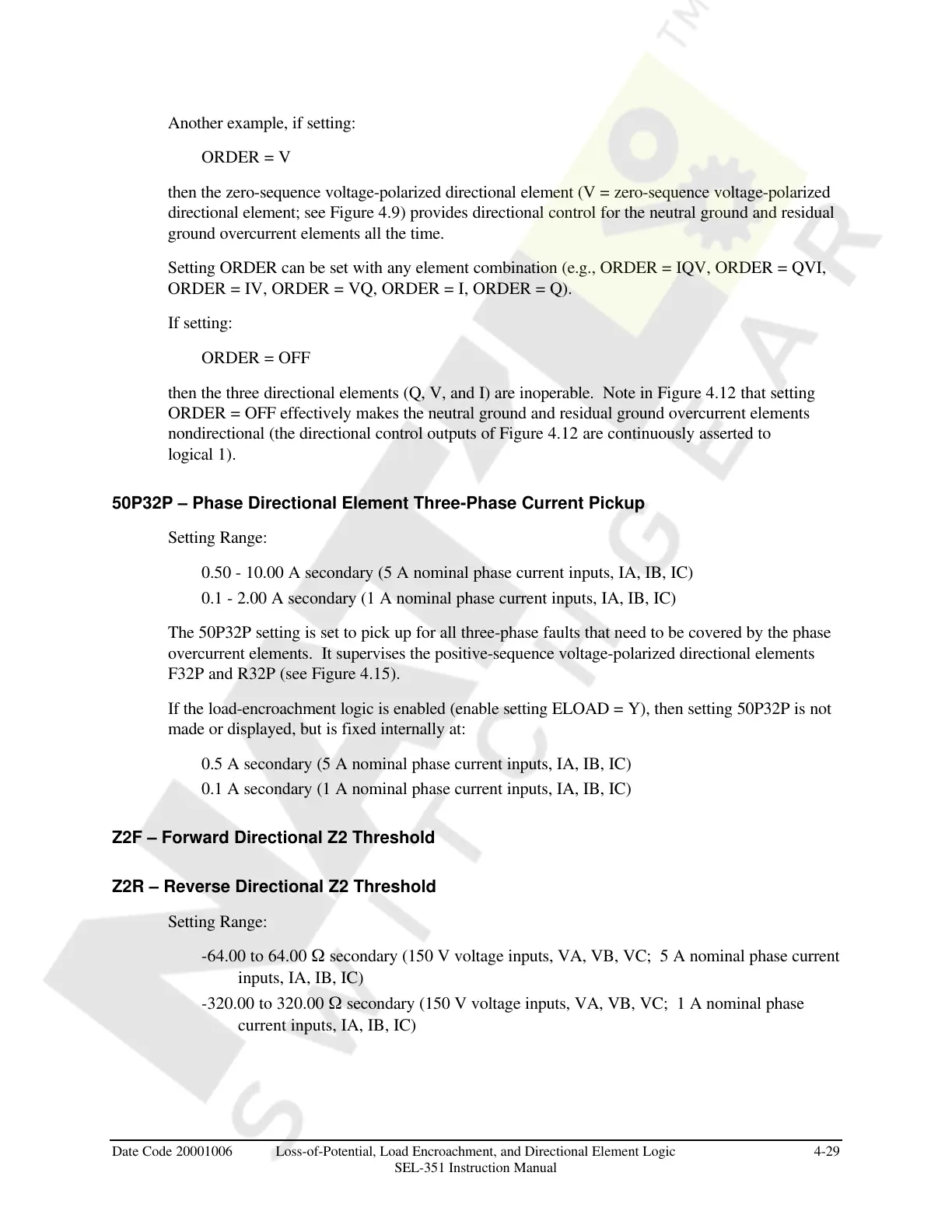 Date Code 20001006 Loss-of-Potential, Load Encroachment, and Directional Element Logic 4-29