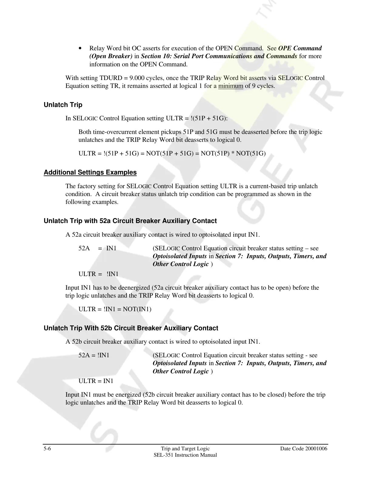 trip logic unlatches and the TRIP Relay Word bit deasserts to logical 0.
