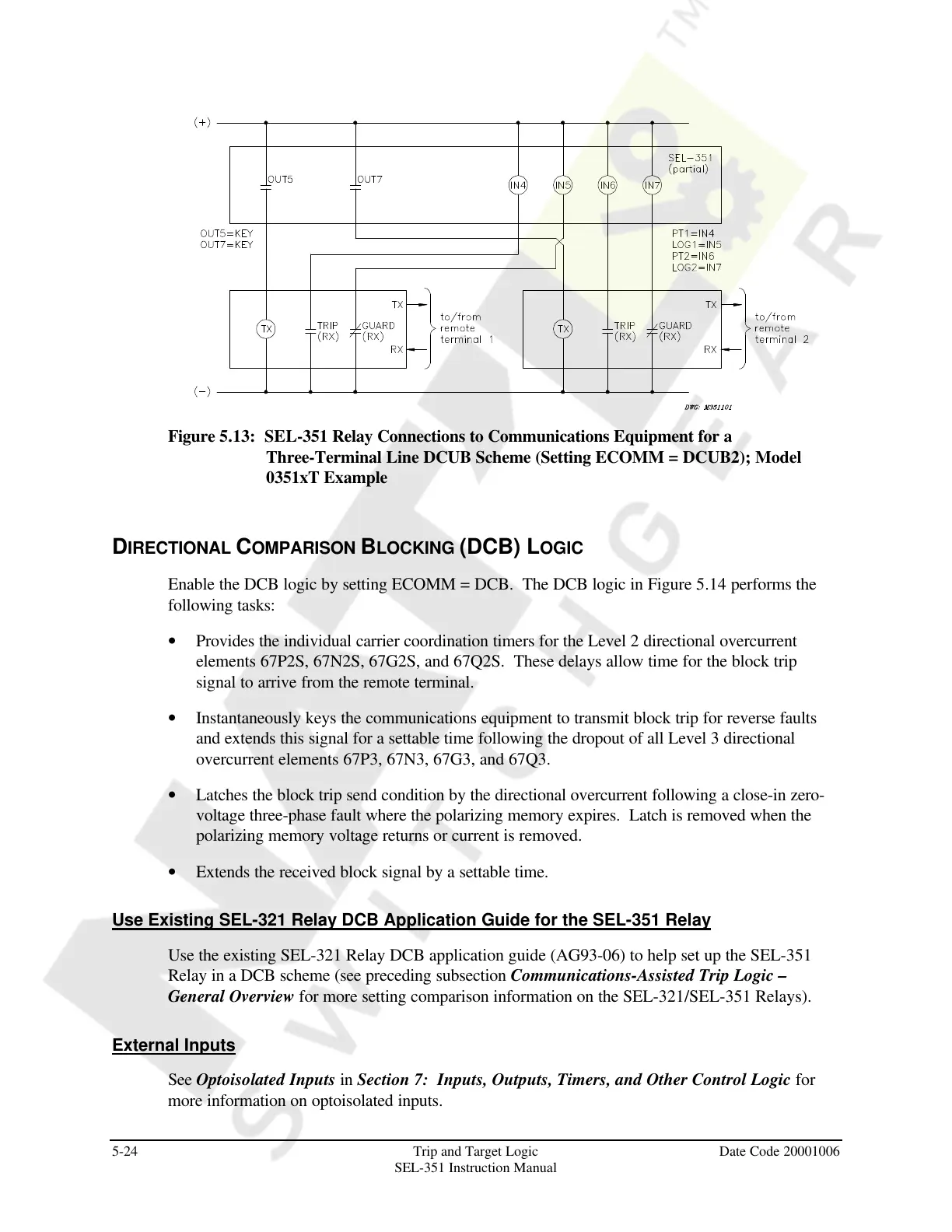 Use Existing SEL-321 Relay DCB Application Guide for the SEL-351 Relay