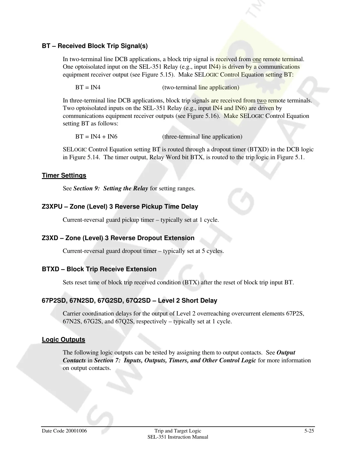 in Figure 5.14. The timer output, Relay Word bit BTX, is routed to the trip logic in Figure 5.1.