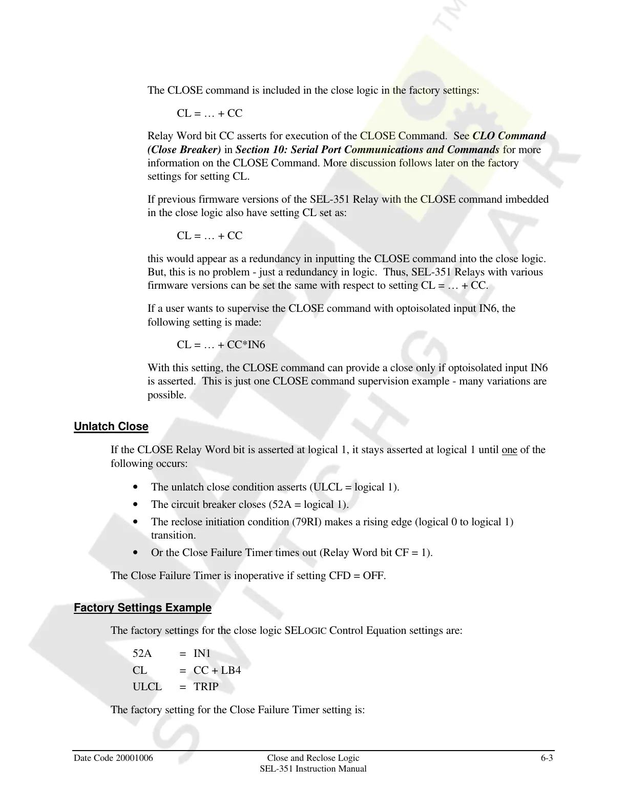 If previous firmware versions of the SEL-351 Relay with the CLOSE command imbedded