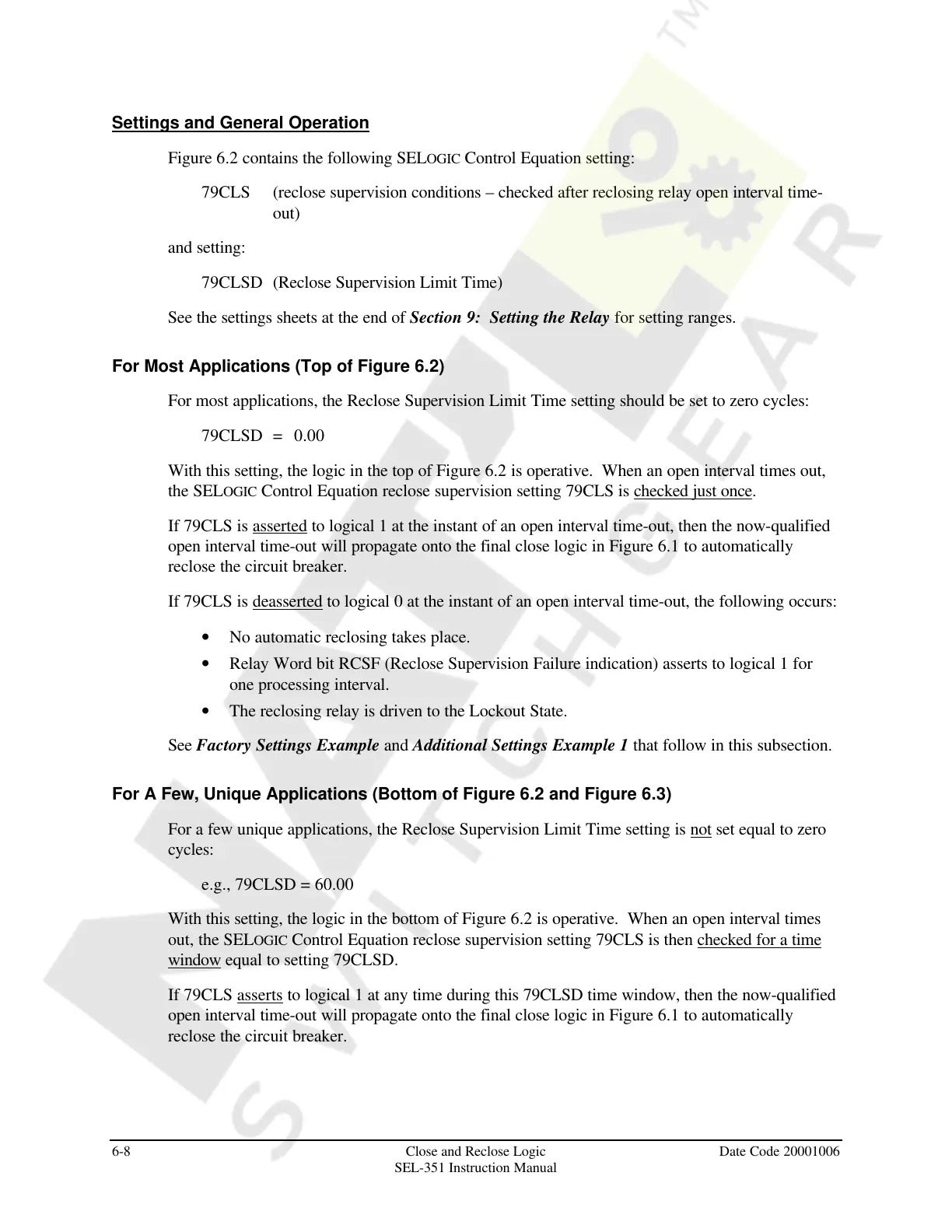 Figure 6.2 contains the following SELOGIC Control Equation setting:
