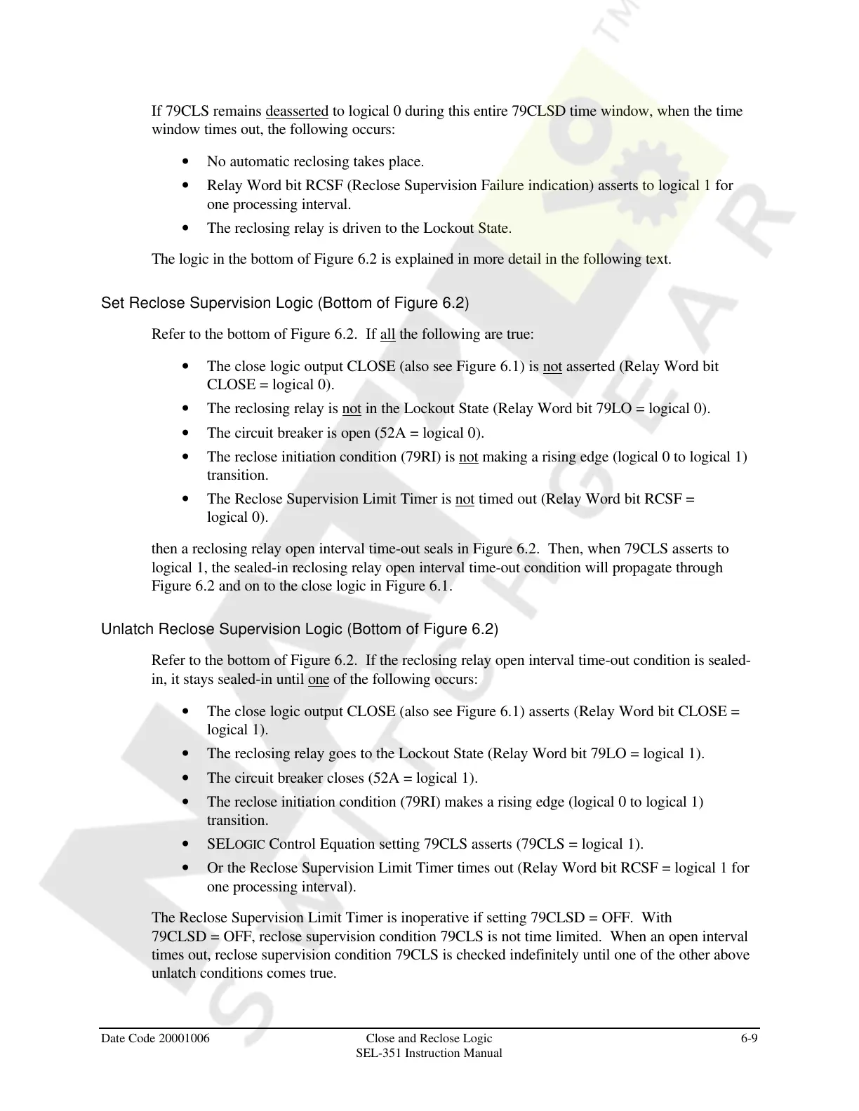 Unlatch Reclose Supervision Logic (Bottom of Figure 6.2)