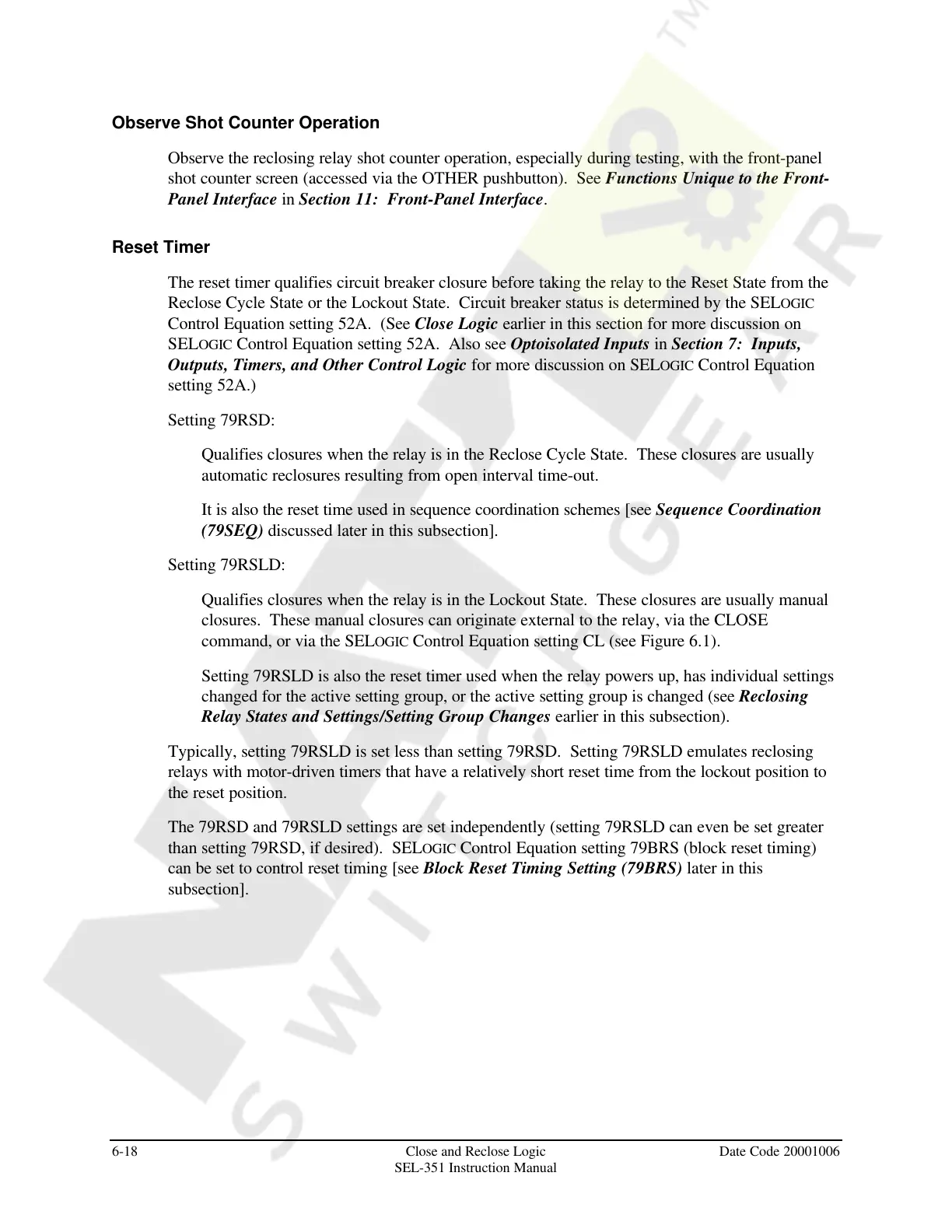 6-18 Close and Reclose Logic Date Code 20001006