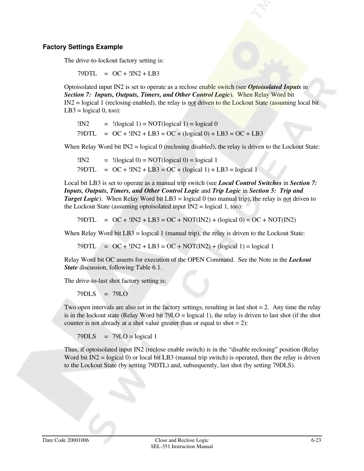 Date Code 20001006 Close and Reclose Logic 6-23