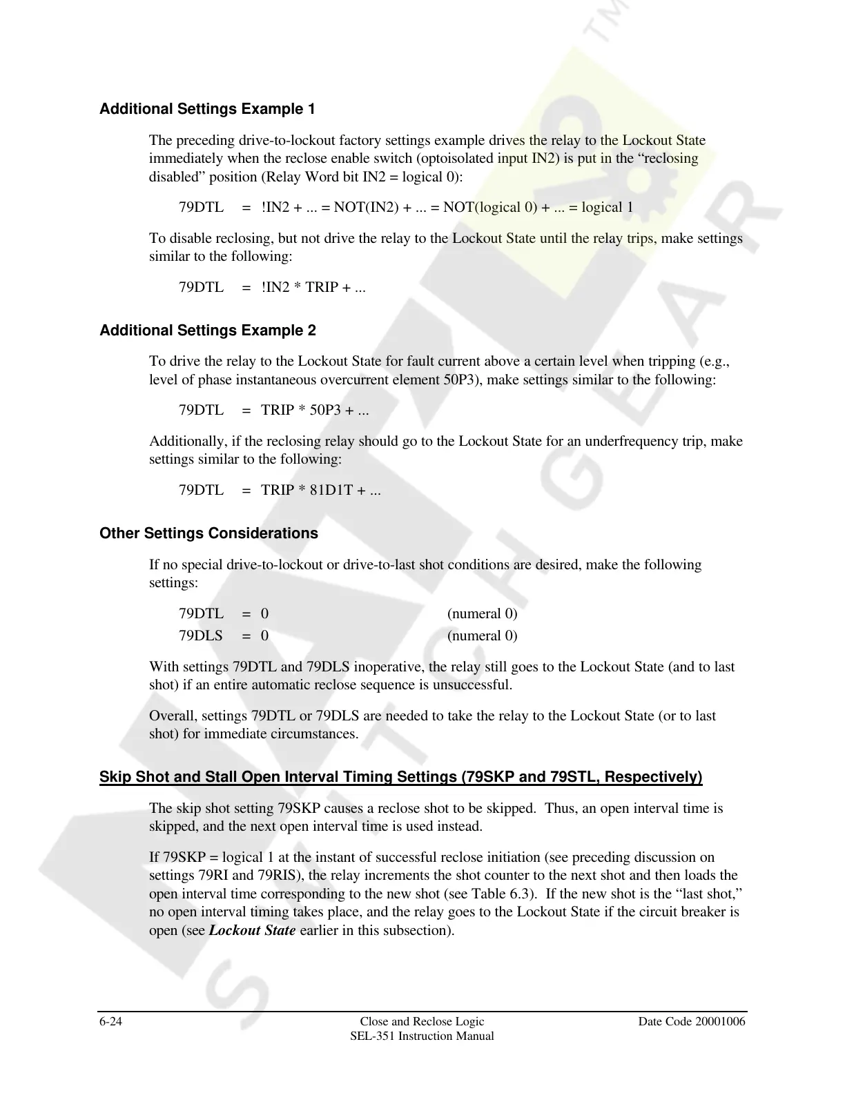 6-24 Close and Reclose Logic Date Code 20001006
