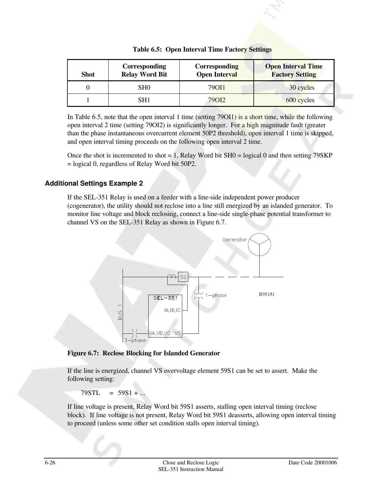 In Table 6.5, note that the open interval 1 time (setting 79OI1) is a short time, while the following