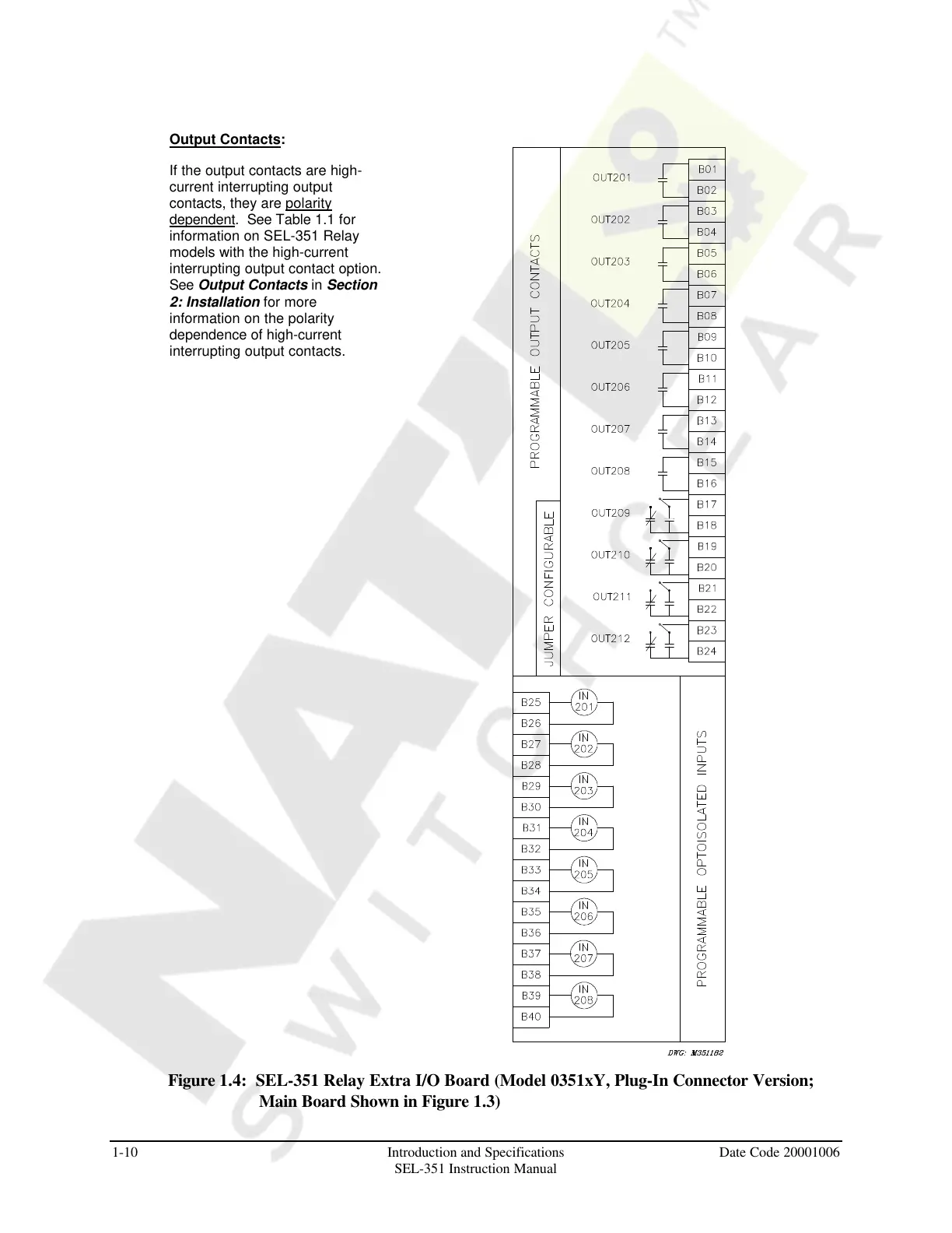 Figure 1.4: SEL-351 Relay Extra I/O Board (Model 0351xY, Plug-In Connector Version;