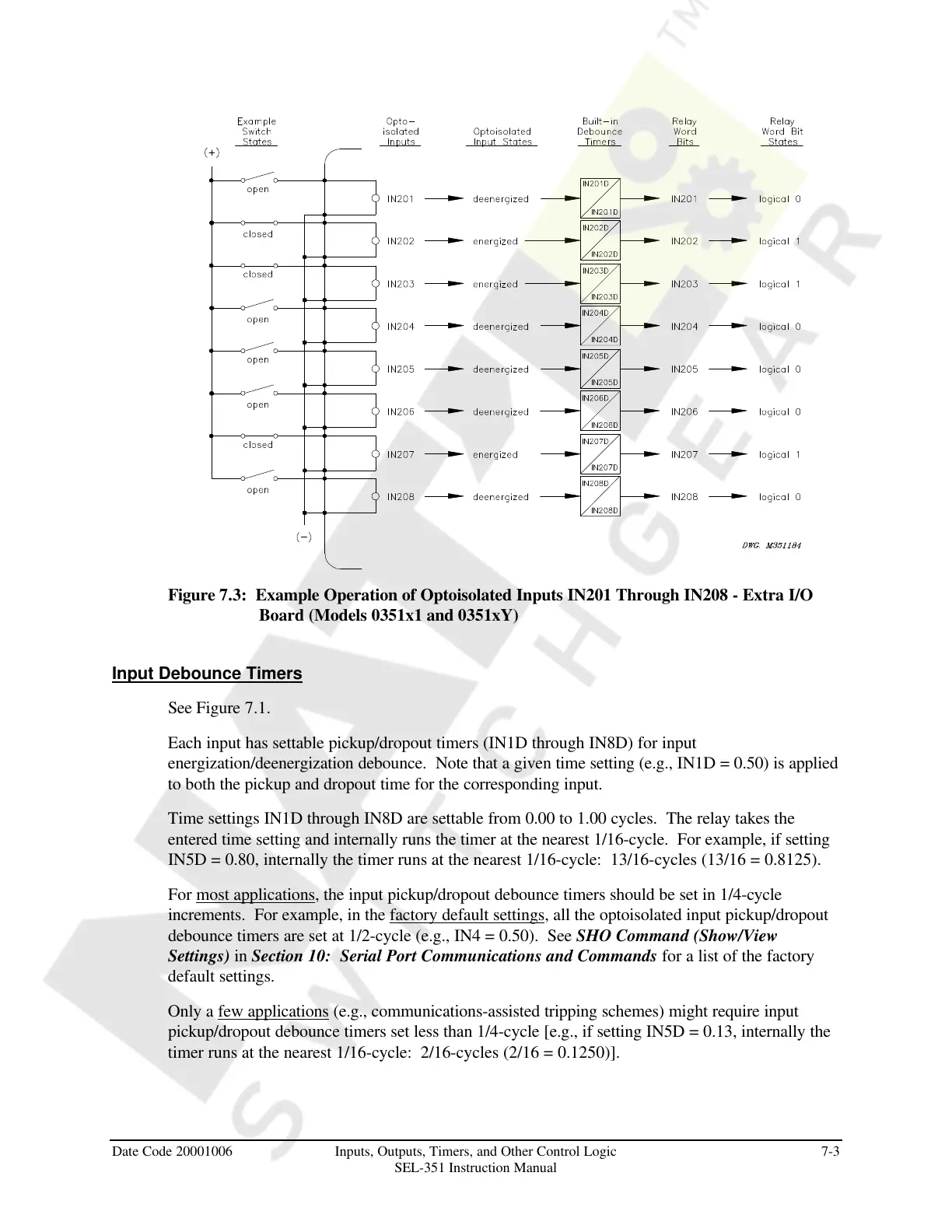 pickup/dropout debounce timers set less than 1/4-cycle [e.g., if setting IN5D = 0.13, internally the