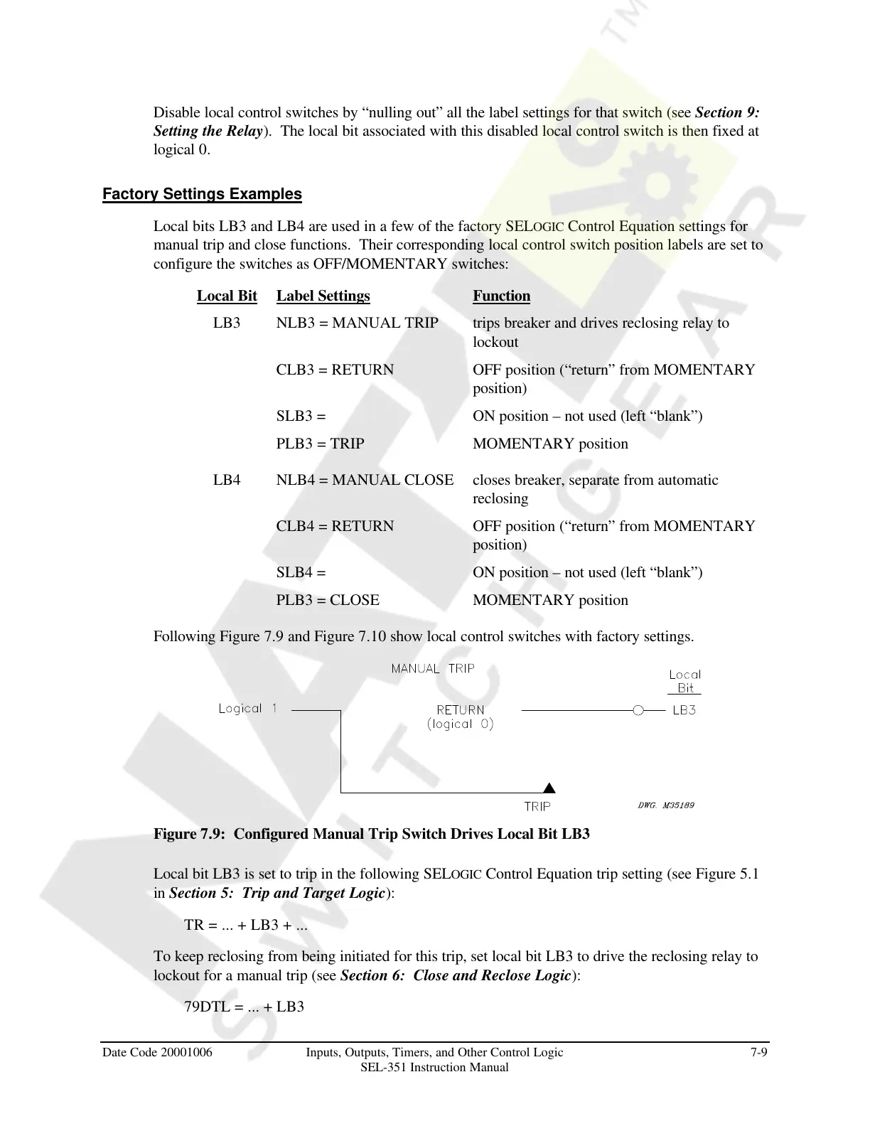 LB3 NLB3 = MANUAL TRIP trips breaker and drives reclosing relay to