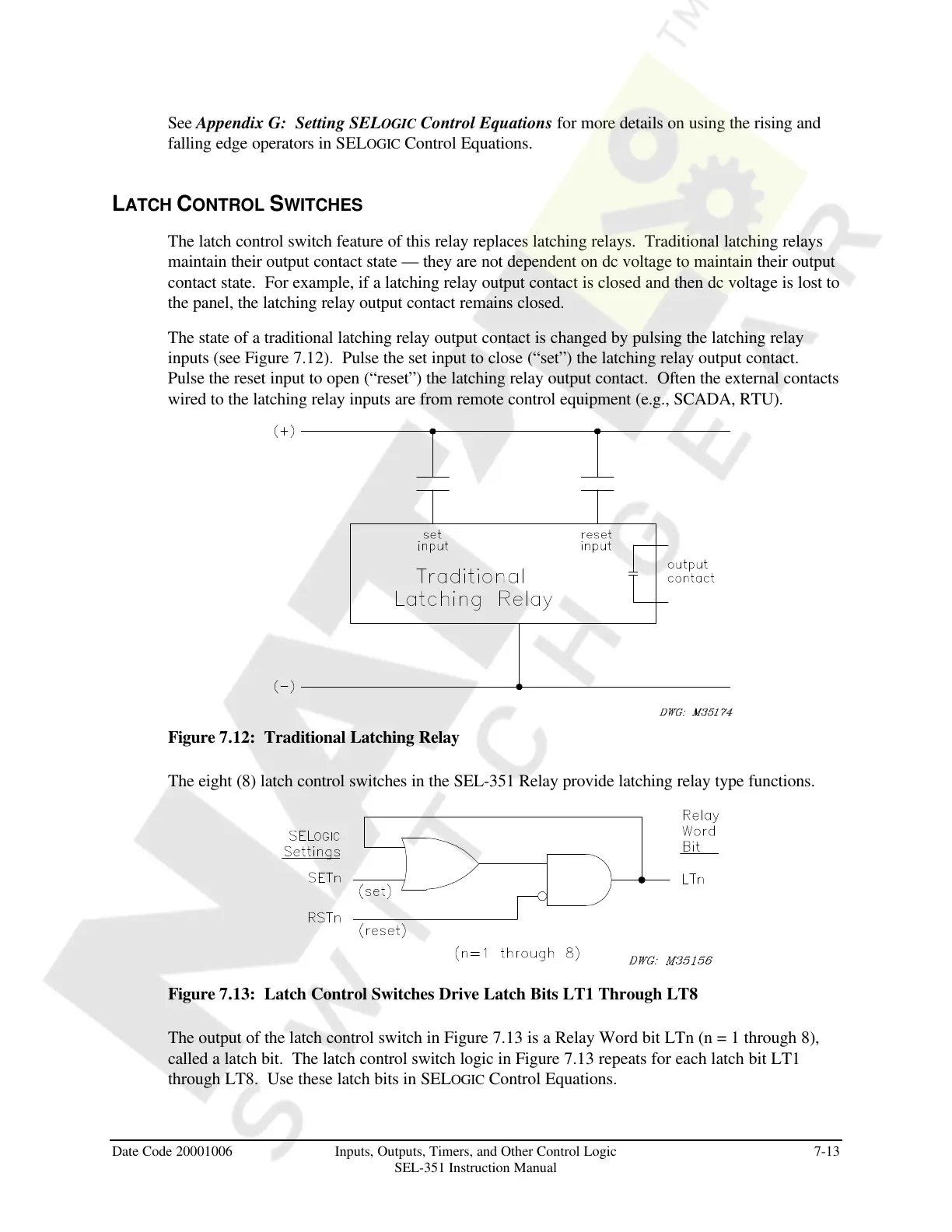 The eight (8) latch control switches in the SEL-351 Relay provide latching relay type functions.
