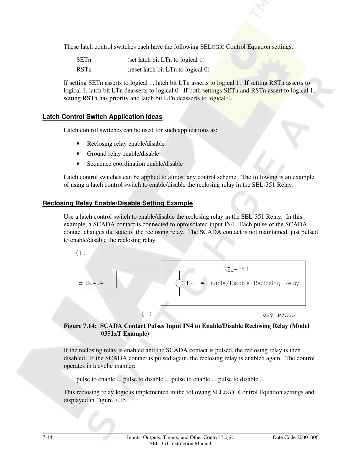 disabled. If the SCADA contact is pulsed again, the reclosing relay is enabled again. The control
