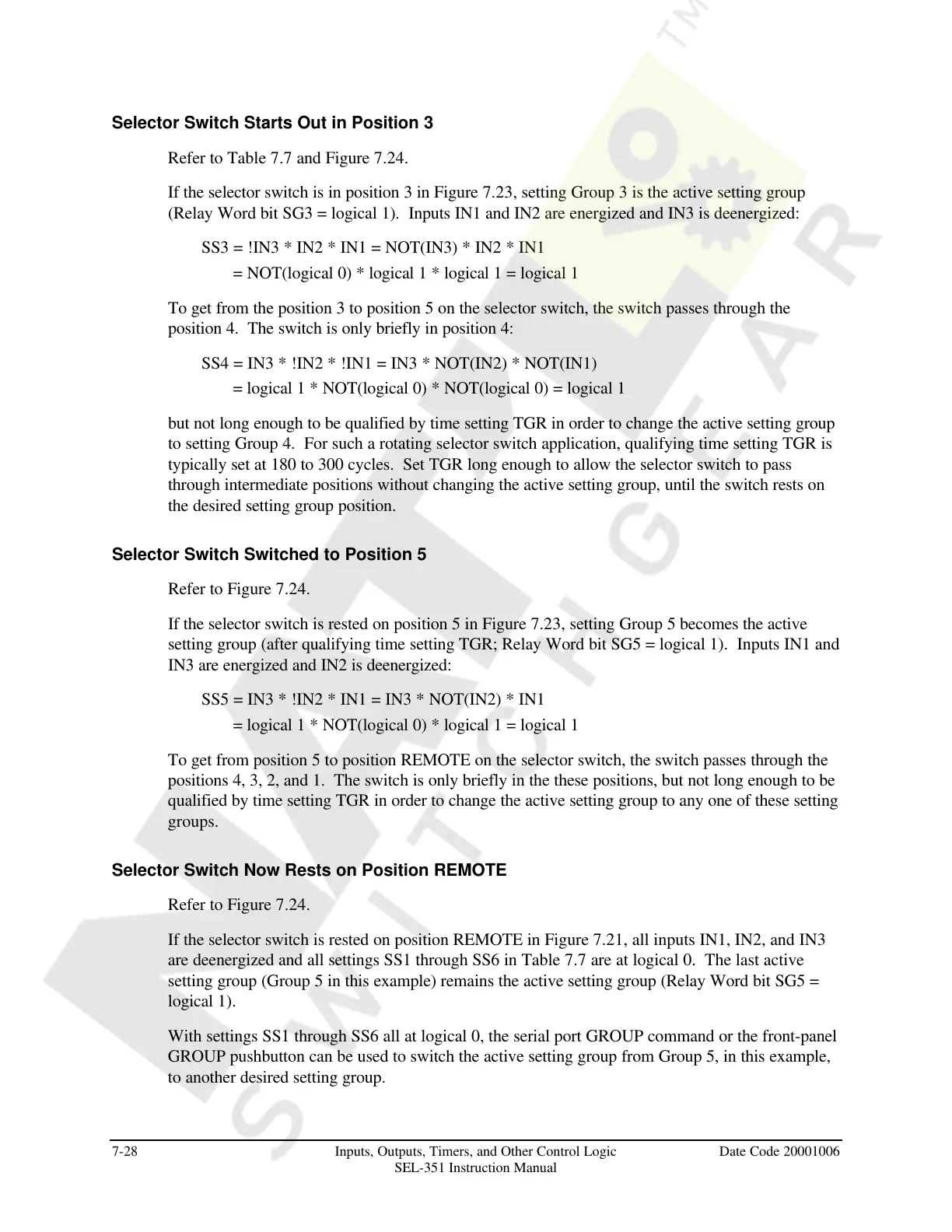 are deenergized and all settings SS1 through SS6 in Table 7.7 are at logical 0. The last active