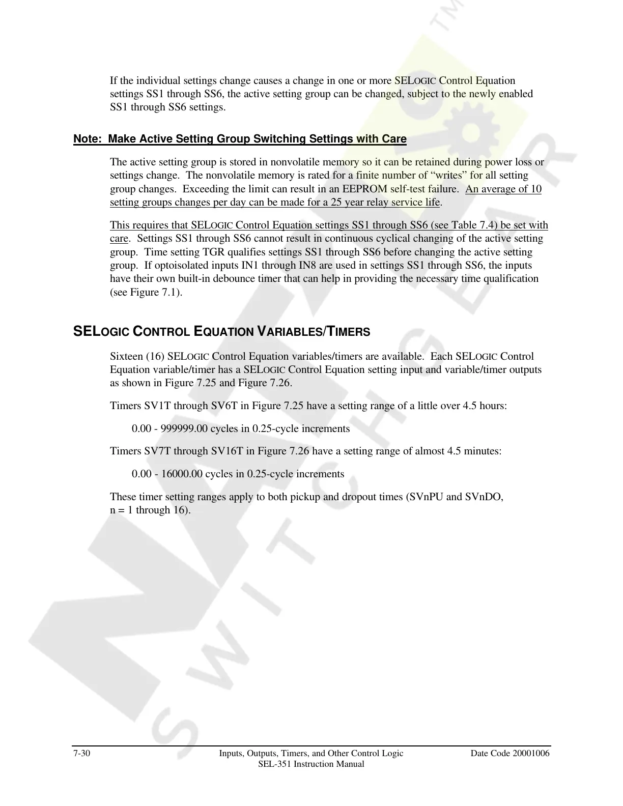 SELOGIC CONTROL EQUATION VARIABLES/TIMERS