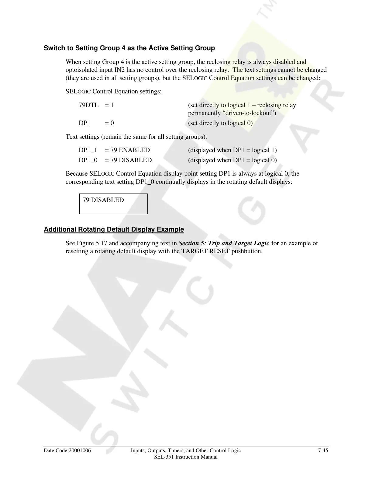 (they are used in all setting groups), but the SELOGIC Control Equation settings can be changed:
