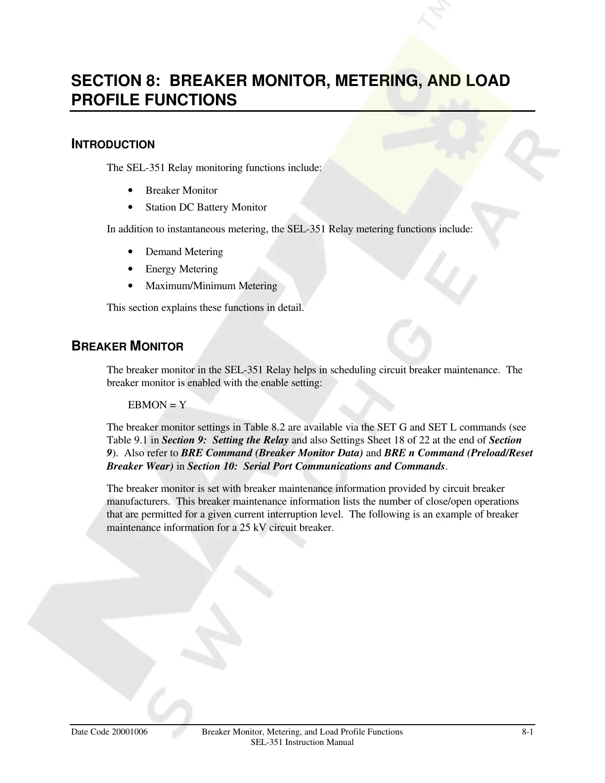 Date Code 20001006 Breaker Monitor, Metering, and Load Profile Functions 8-1