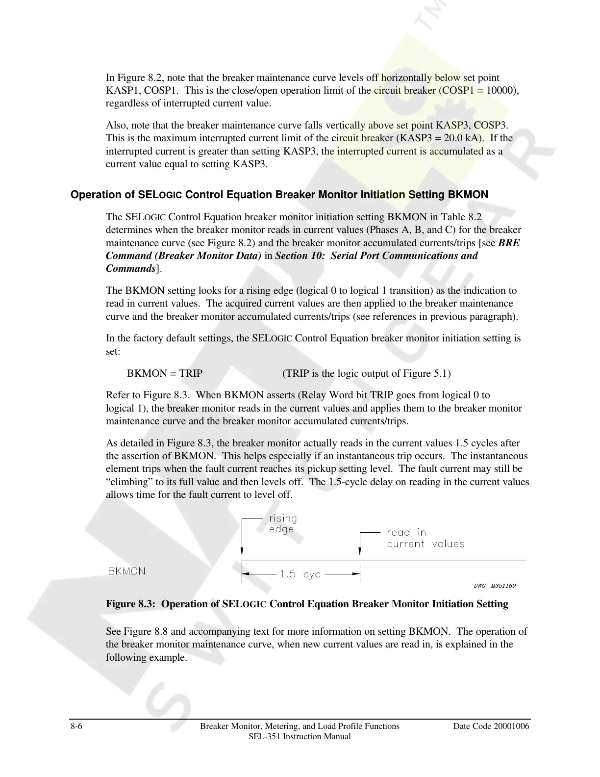 Refer to Figure 8.3. When BKMON asserts (Relay Word bit TRIP goes from logical 0 to