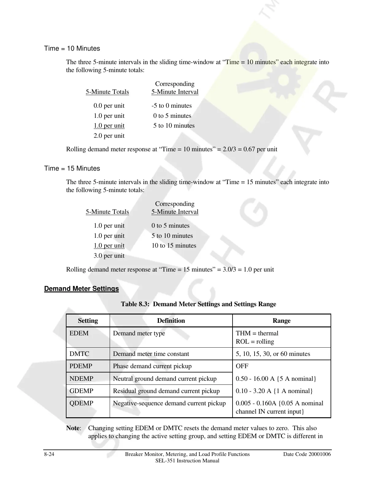 DMTC Demand meter time constant 5, 10, 15, 30, or 60 minutes