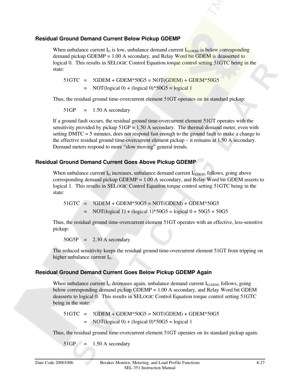Residual Ground Demand Current Goes Above Pickup GDEMP