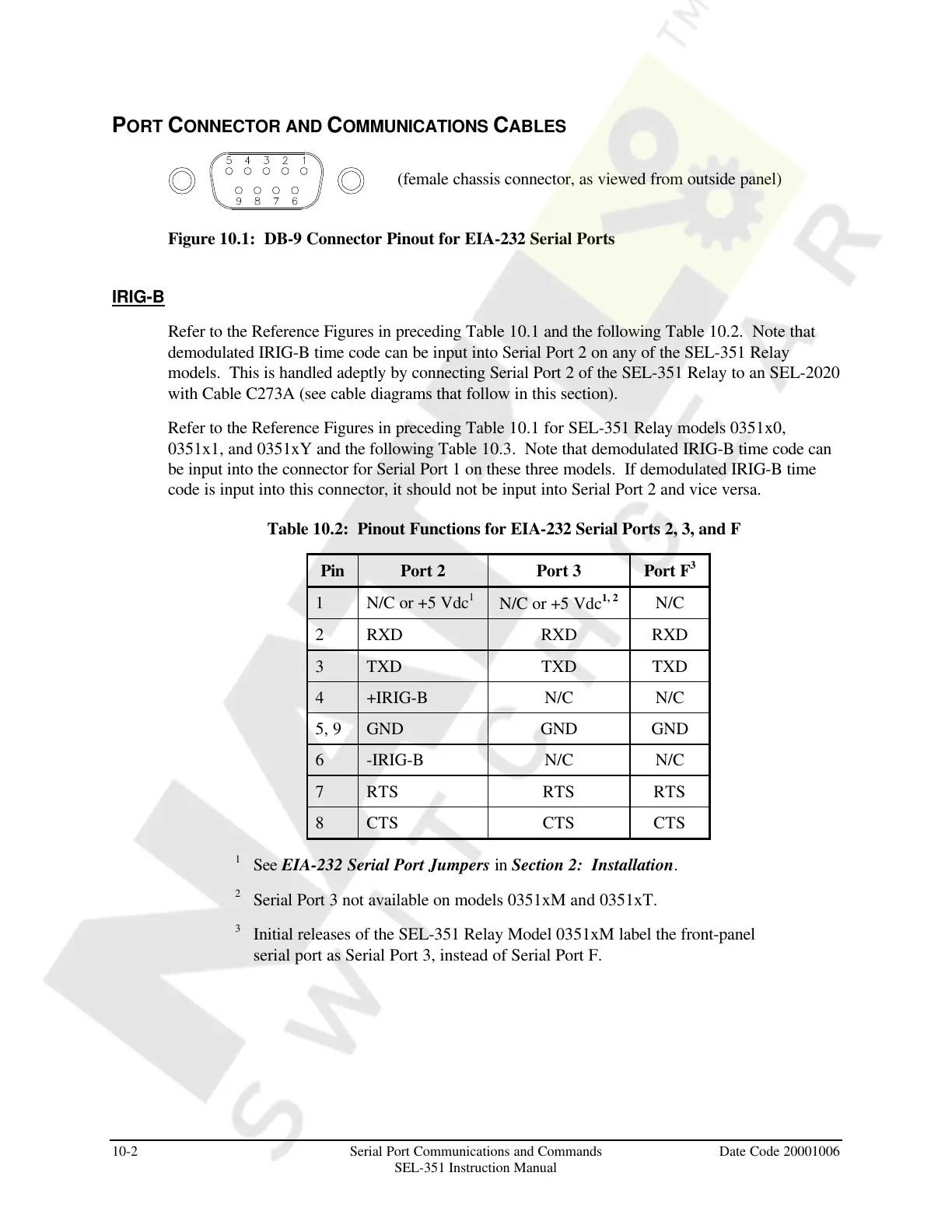 demodulated IRIG-B time code can be input into Serial Port 2 on any of the SEL-351 Relay