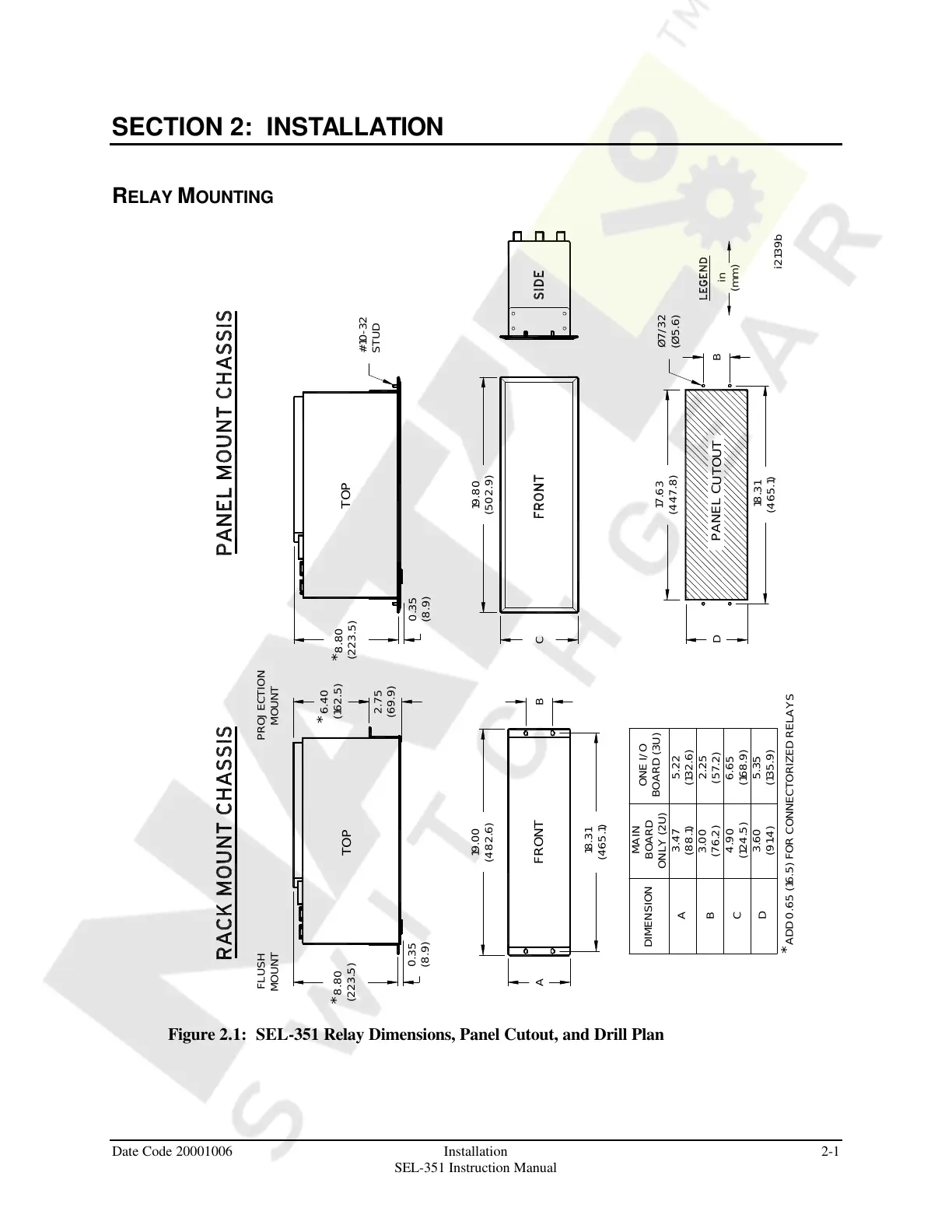 Schweitzer Engineering Laboratories SEL-351 - Section 2: Installation; Relay Mounting