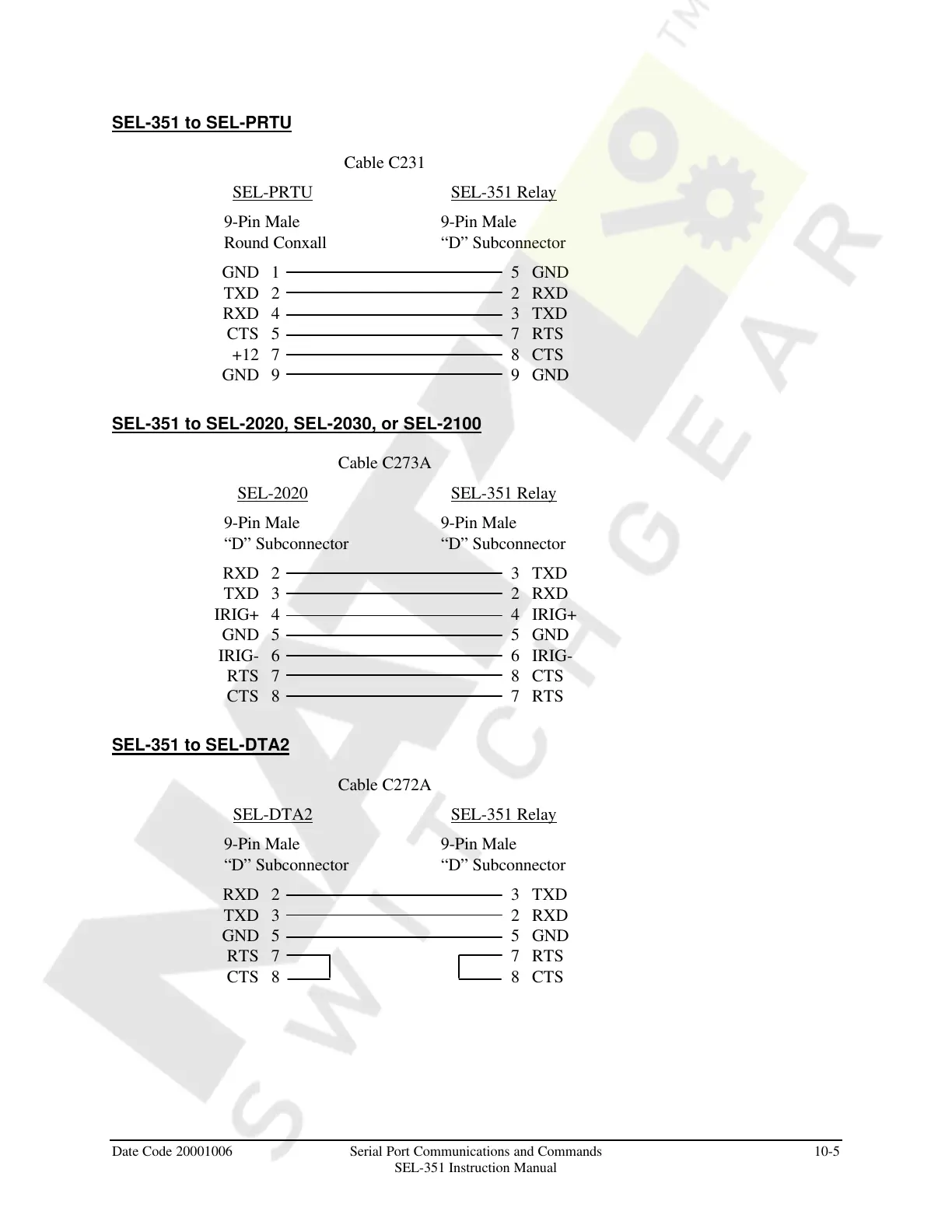 SEL-351 to SEL-2020, SEL-2030, or SEL-2100
