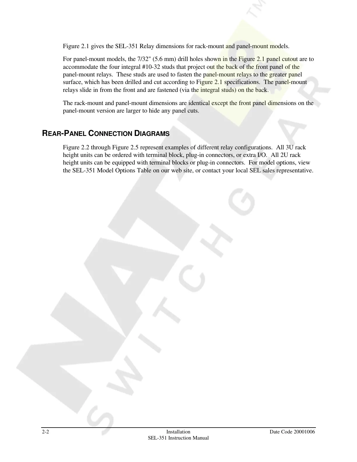the SEL-351 Model Options Table on our web site, or contact your local SEL sales representative.
