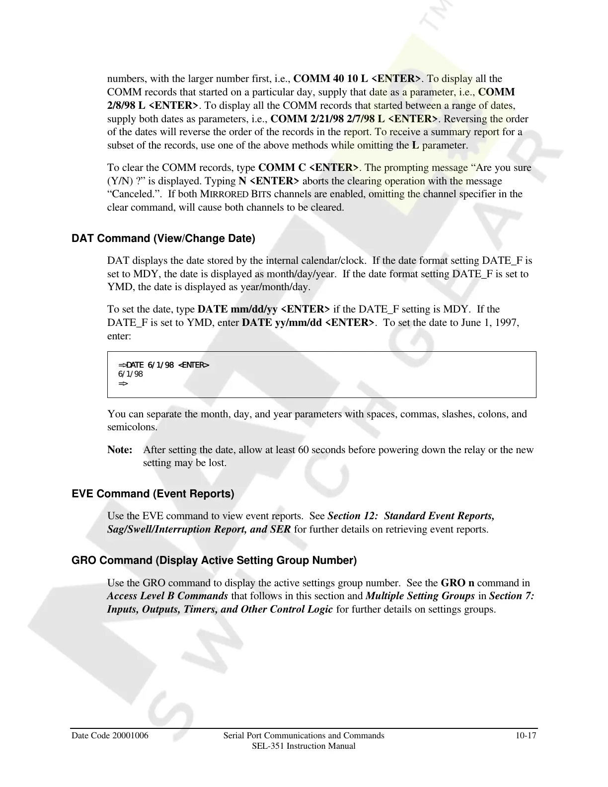 Date Code 20001006 Serial Port Communications and Commands 10-17