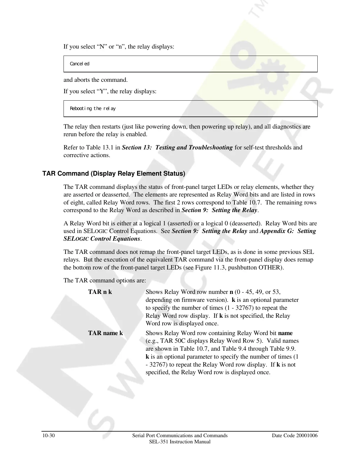 TAR Command (Display Relay Element Status)
