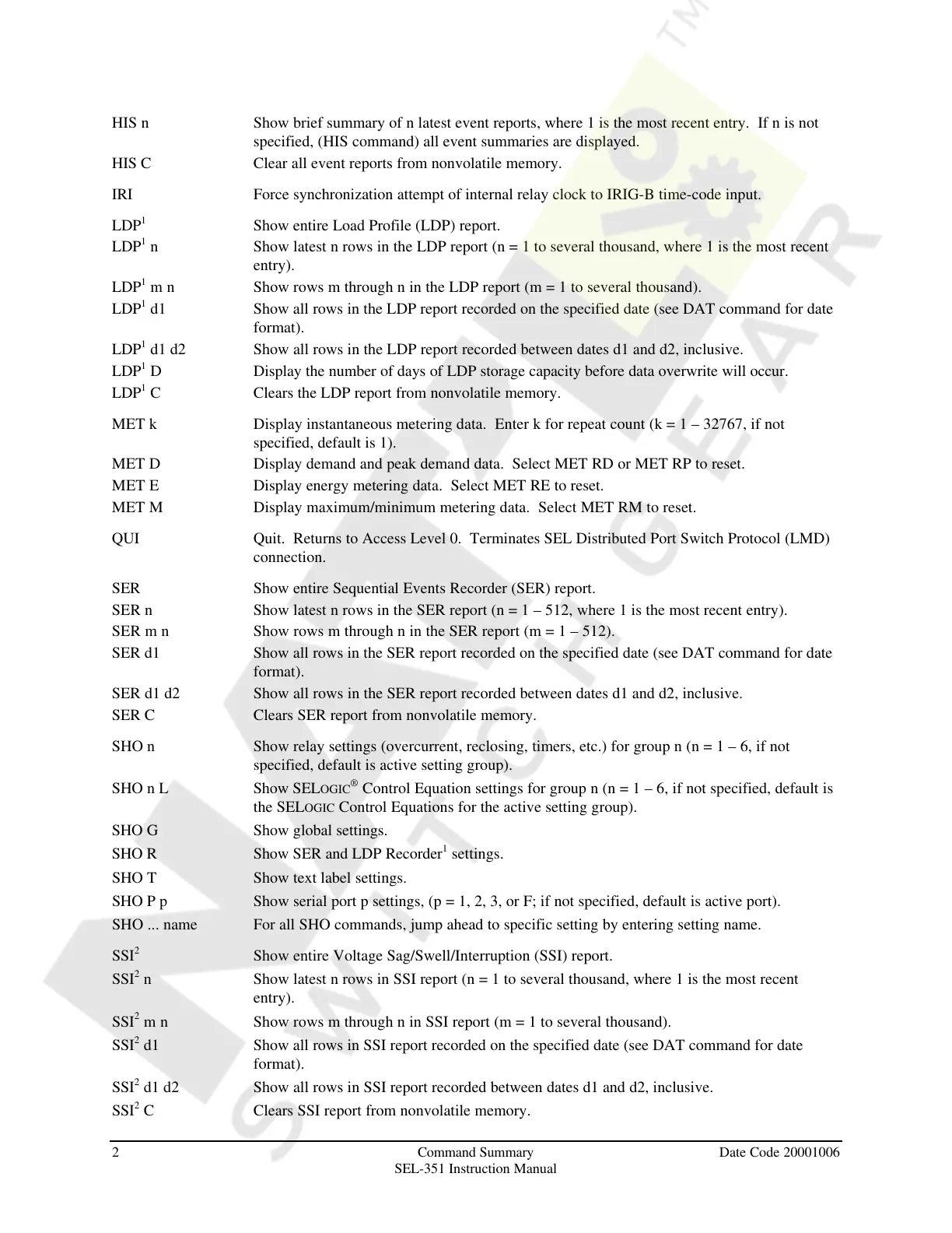 2 Command Summary Date Code 20001006