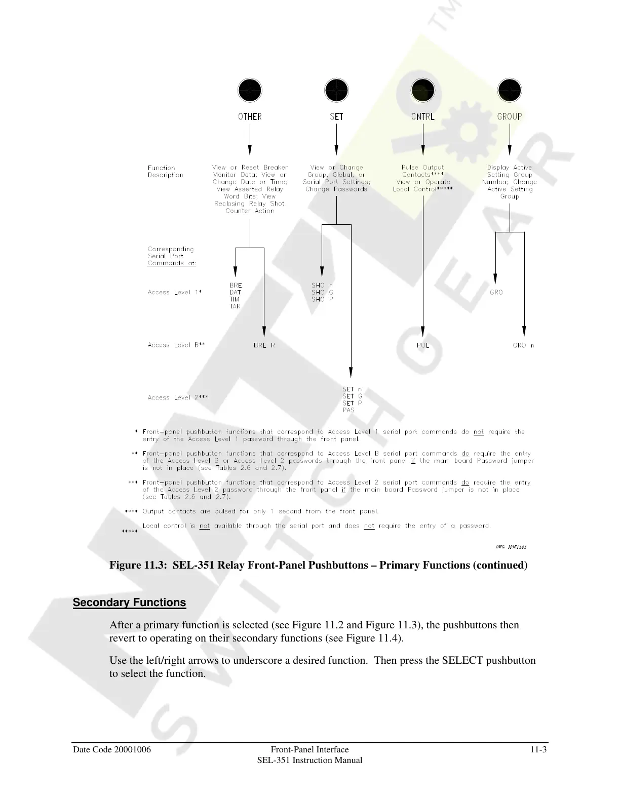 Figure 11.3: SEL-351 Relay Front-Panel Pushbuttons – Primary Functions (continued)