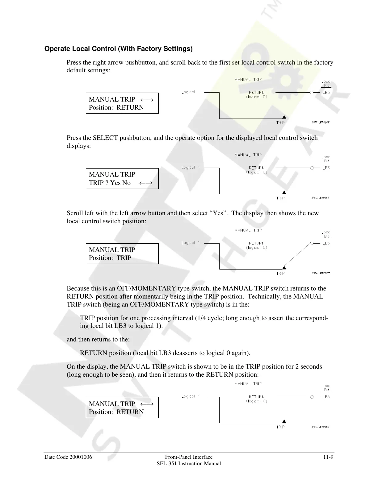 Because this is an OFF/MOMENTARY type switch, the MANUAL TRIP switch returns to the