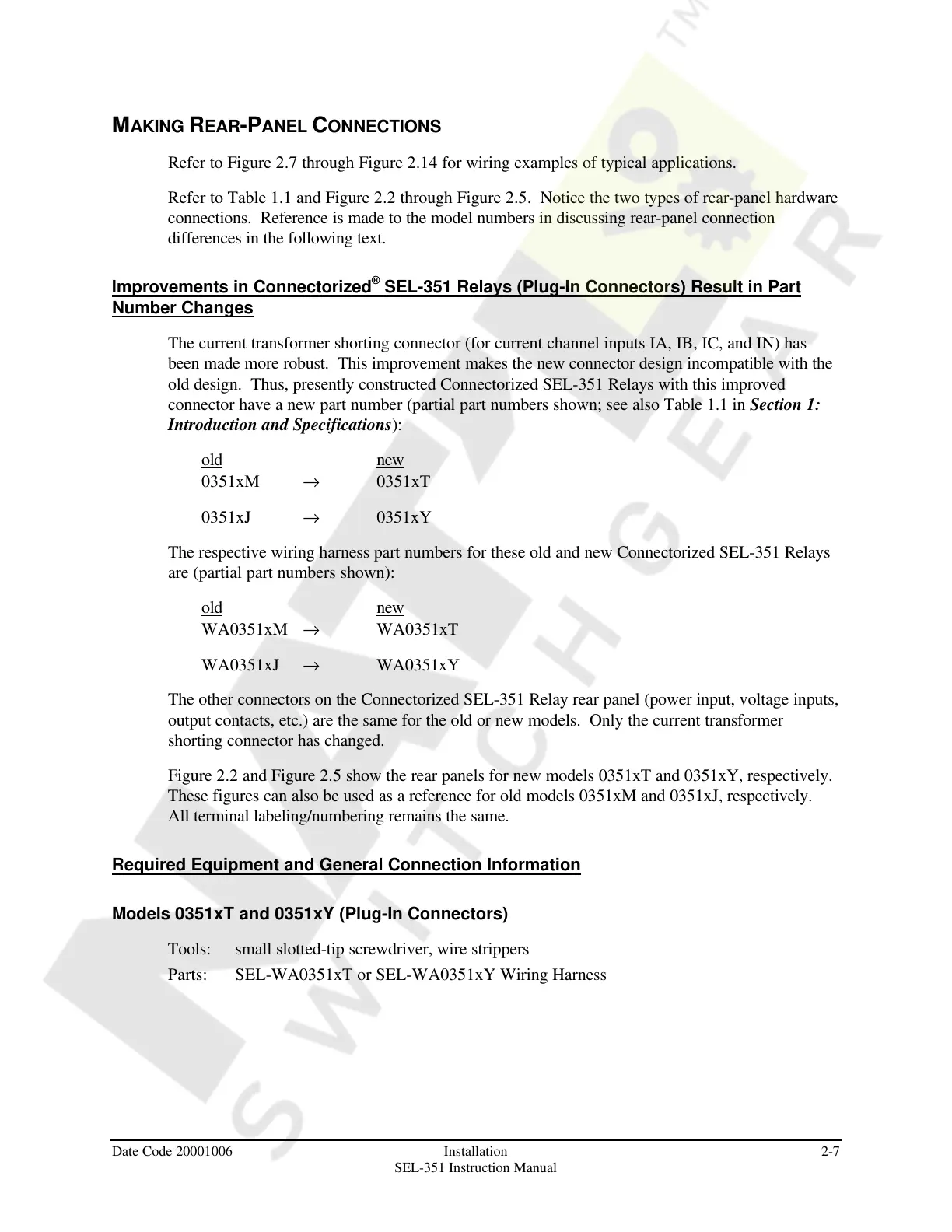 old design. Thus, presently constructed Connectorized SEL-351 Relays with this improved