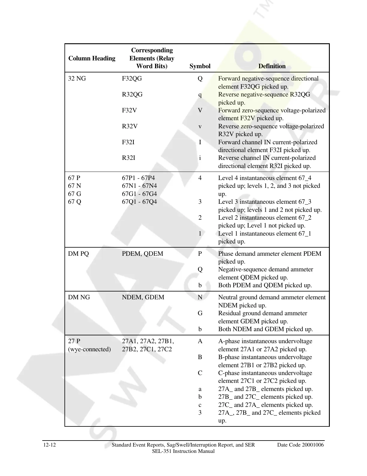12-12 Standard Event Reports, Sag/Swell/Interruption Report, and SER Date Code 20001006