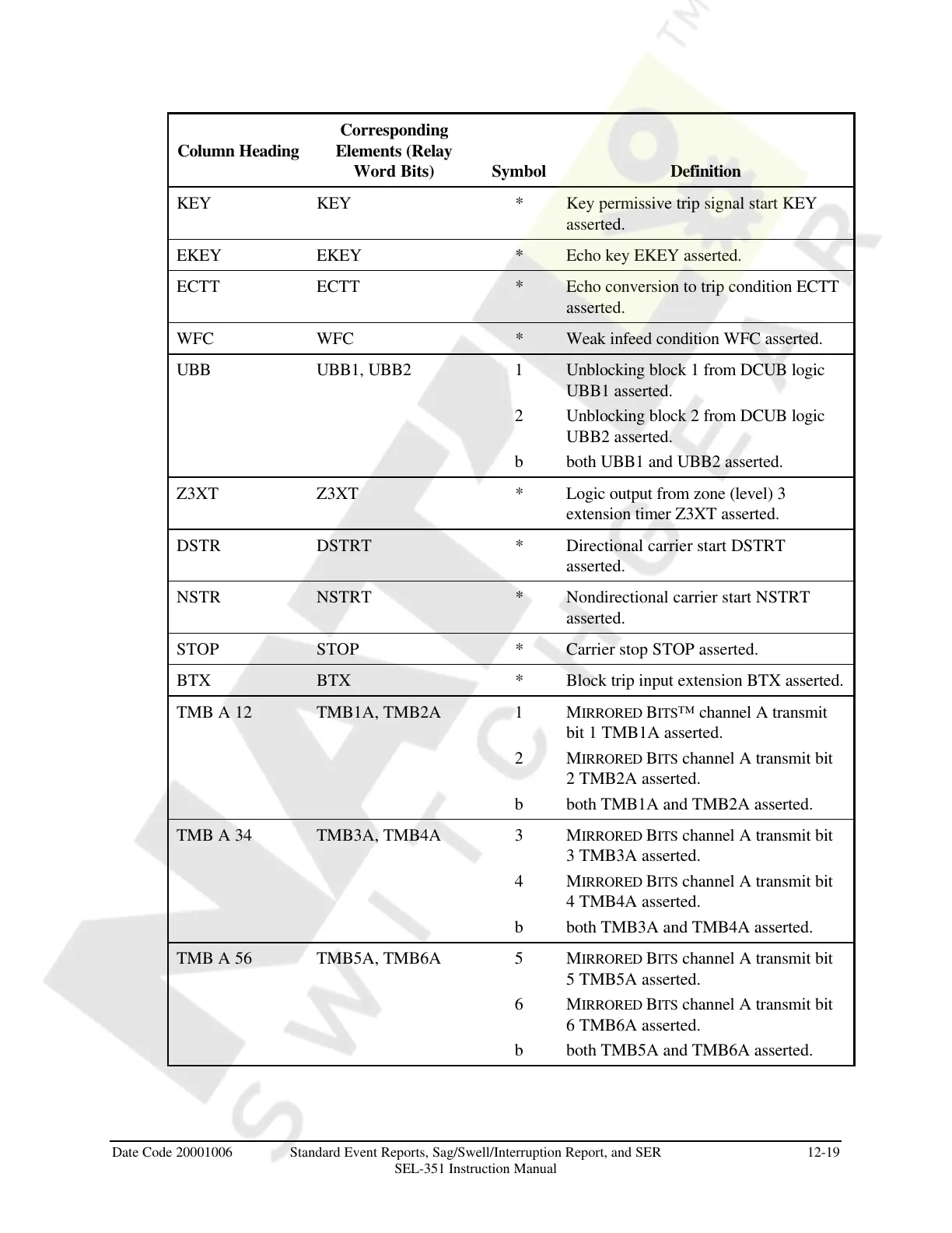 TMB A 12 TMB1A, TMB2A 1 MIRRORED BITS™ channel A transmit