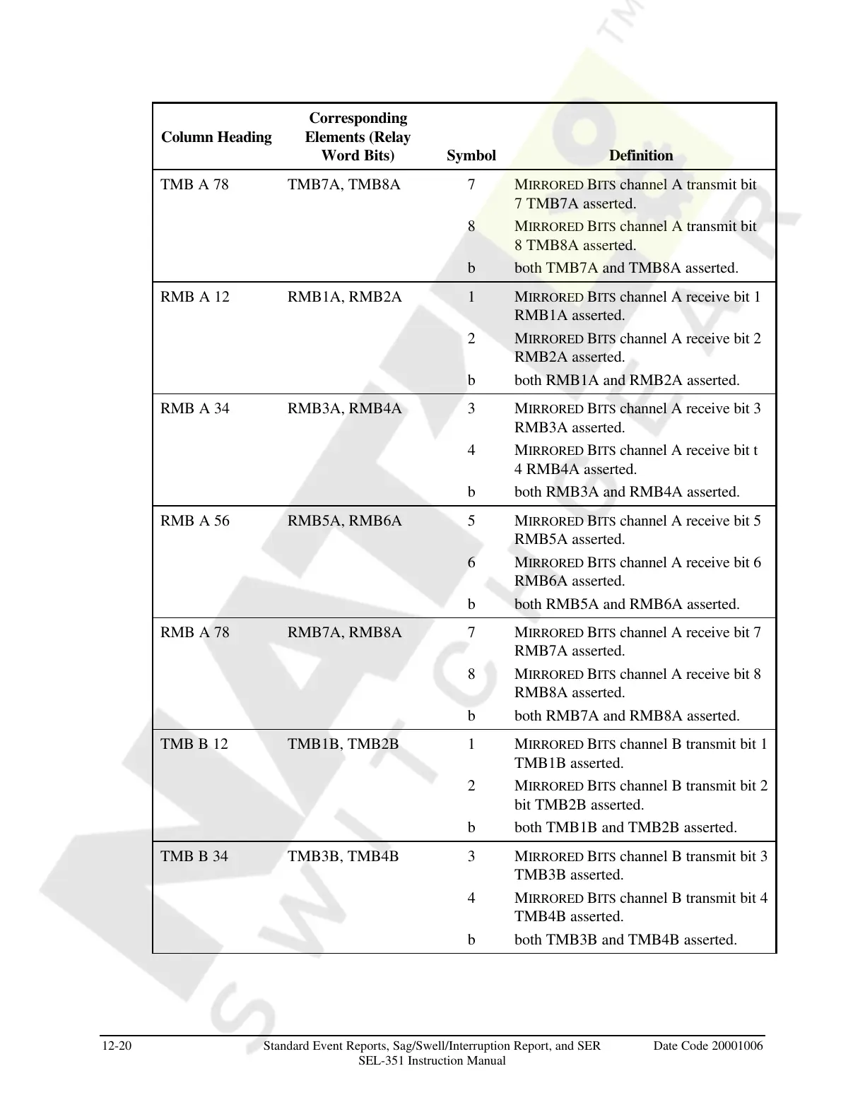 12-20 Standard Event Reports, Sag/Swell/Interruption Report, and SER Date Code 20001006
