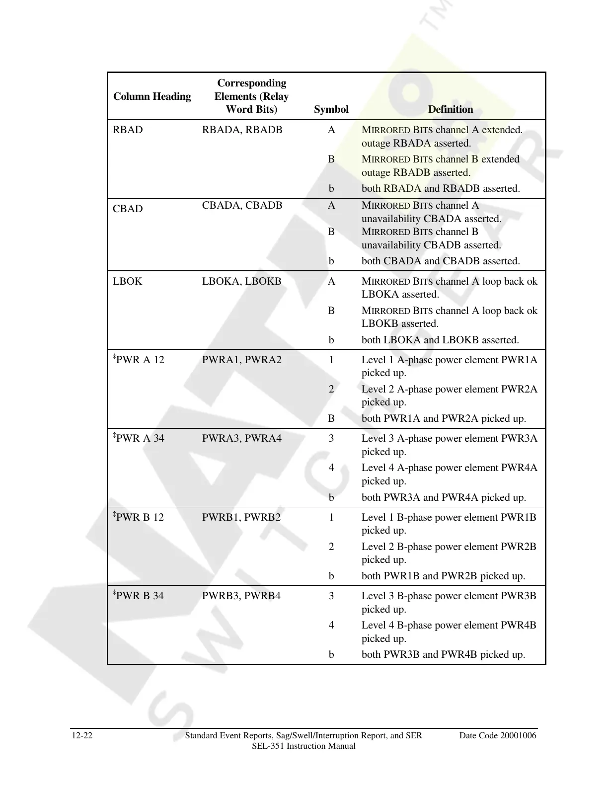 12-22 Standard Event Reports, Sag/Swell/Interruption Report, and SER Date Code 20001006