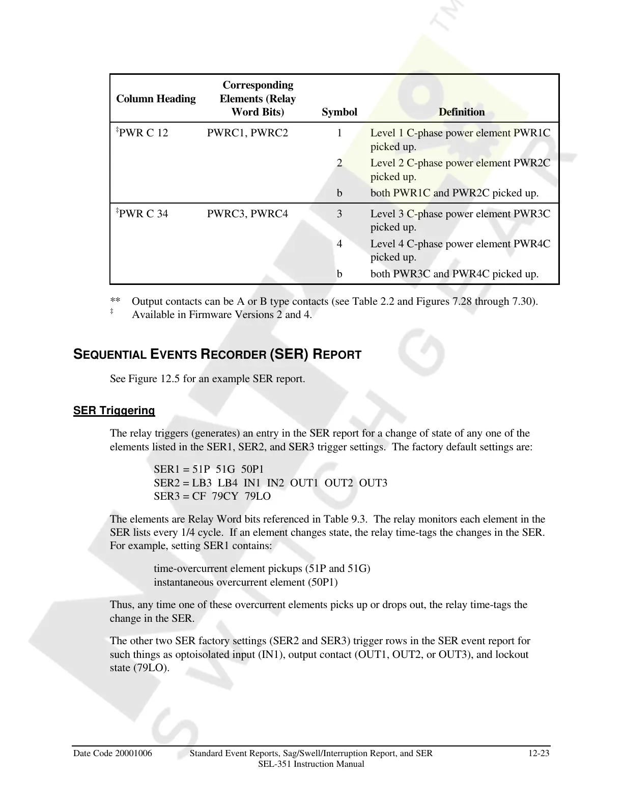 Date Code 20001006 Standard Event Reports, Sag/Swell/Interruption Report, and SER