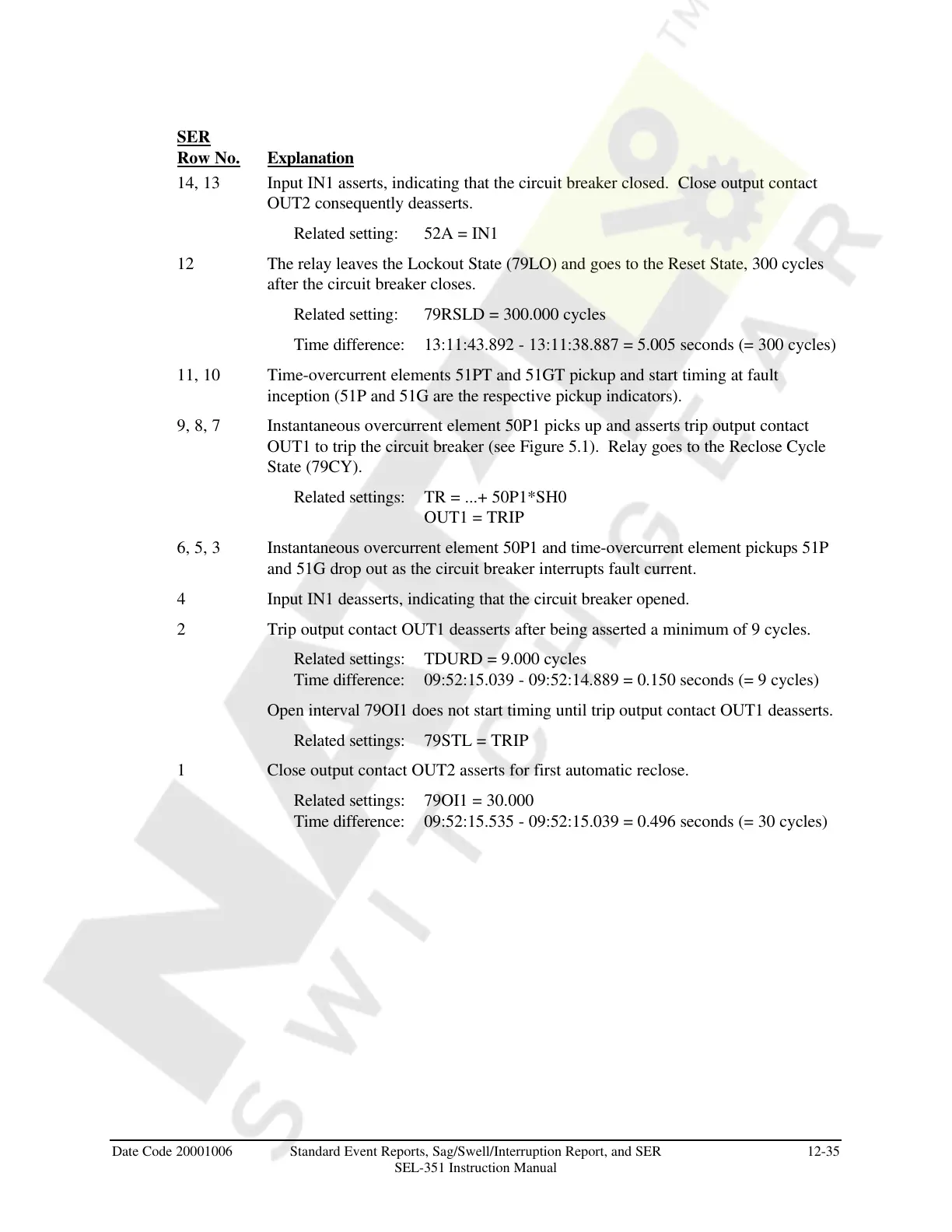 Date Code 20001006 Standard Event Reports, Sag/Swell/Interruption Report, and SER