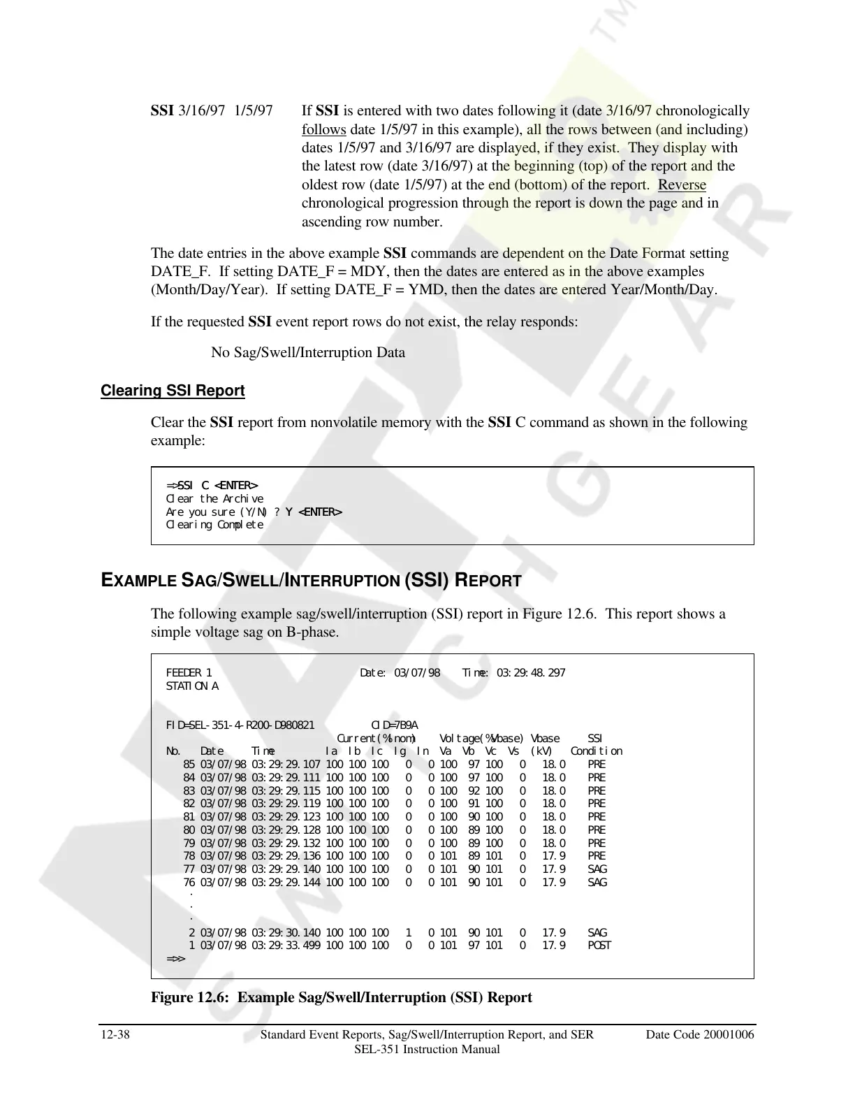 12-38 Standard Event Reports, Sag/Swell/Interruption Report, and SER Date Code 20001006