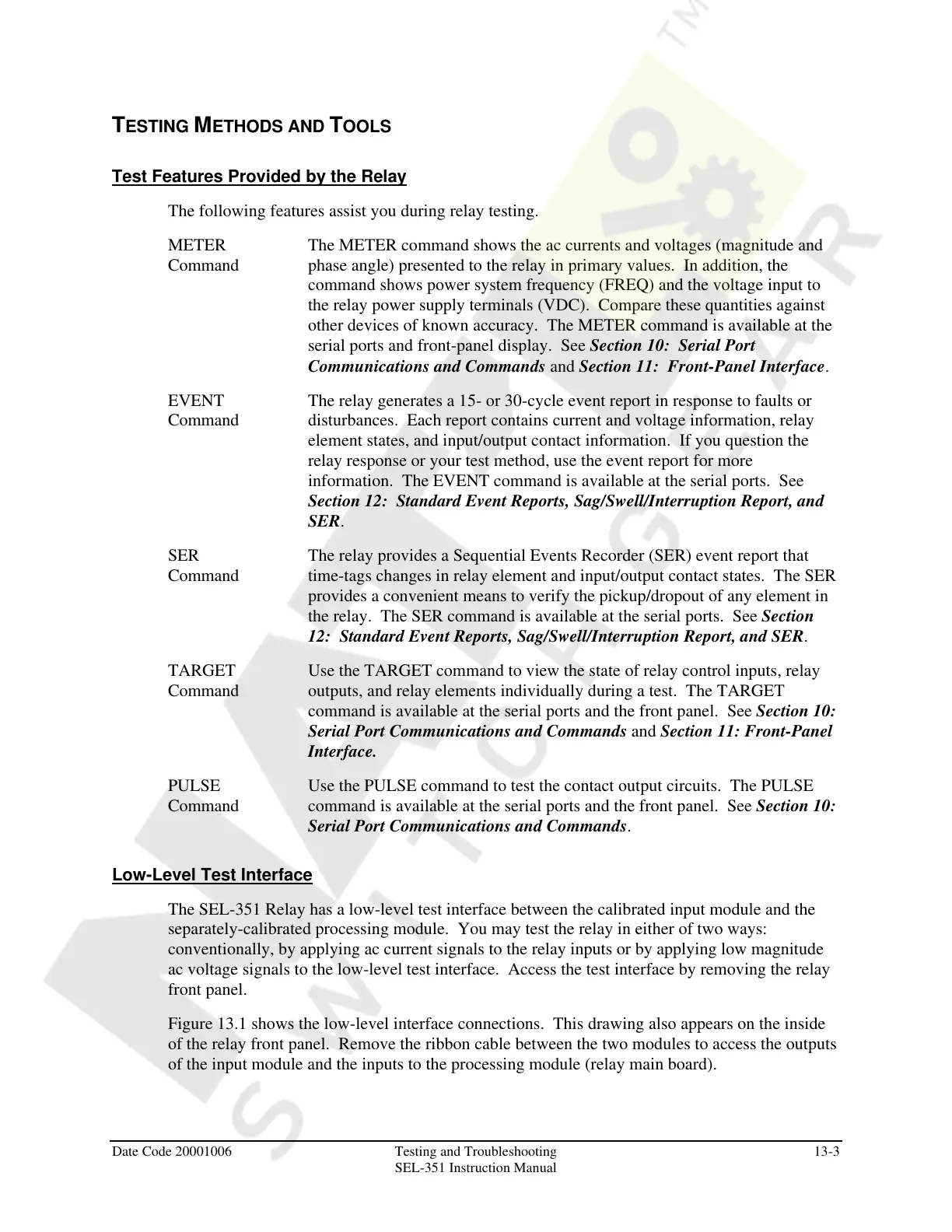 the relay. The SER command is available at the serial ports. See Section